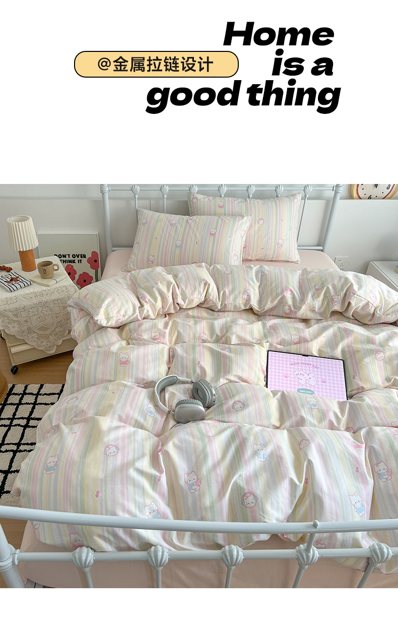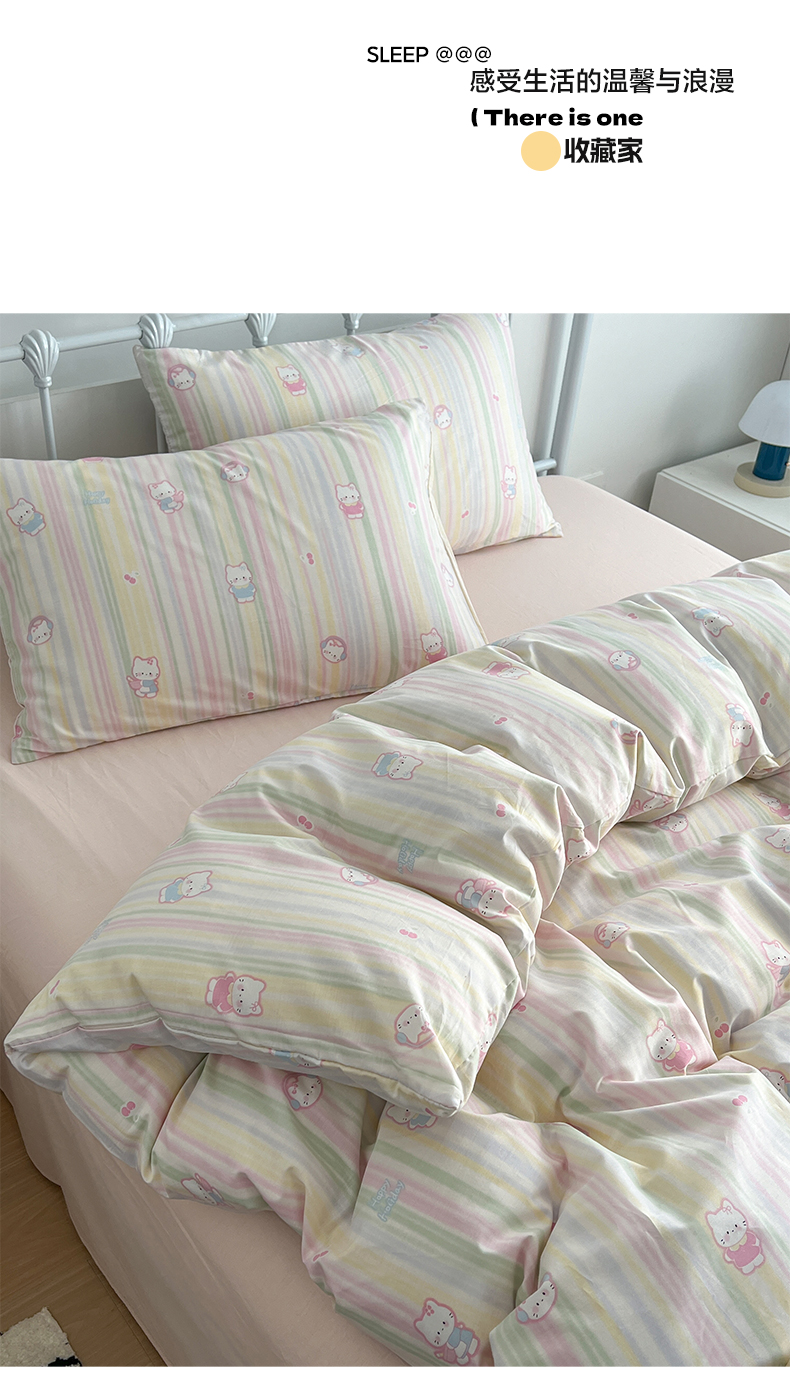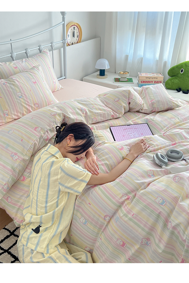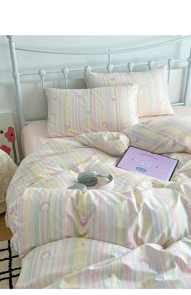 商品名称:早晨家纺 2026新款INS减龄可爱风卡通40支全棉纯棉色织水洗棉四件套 软糖彩虹小奶猫