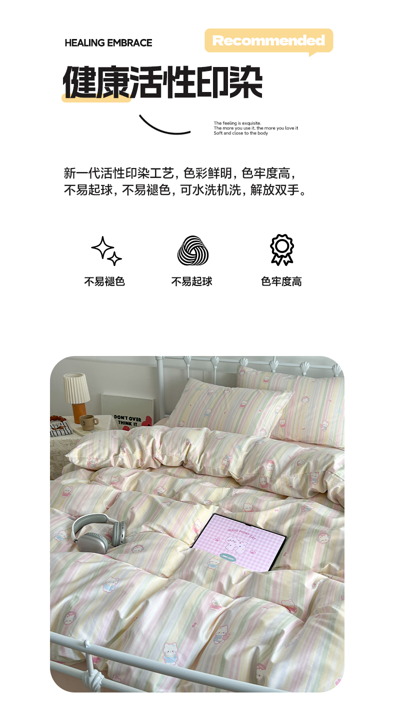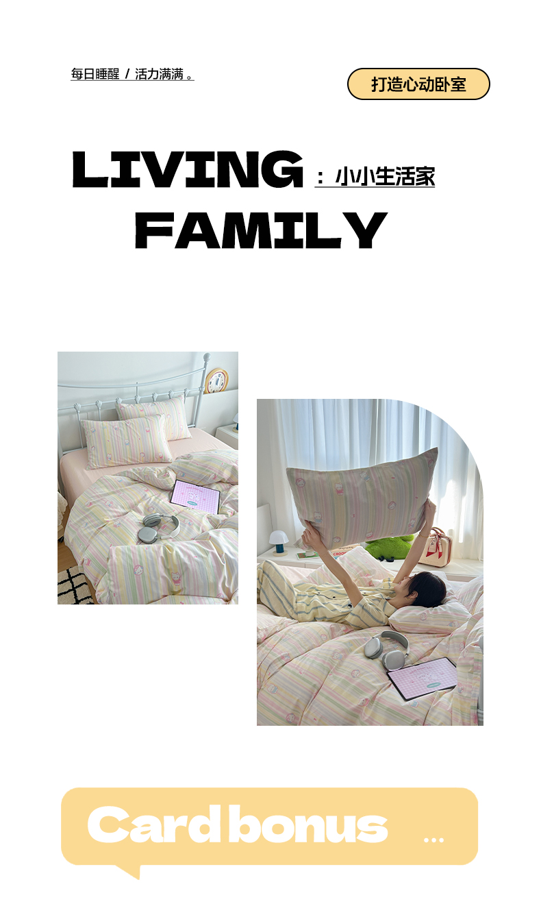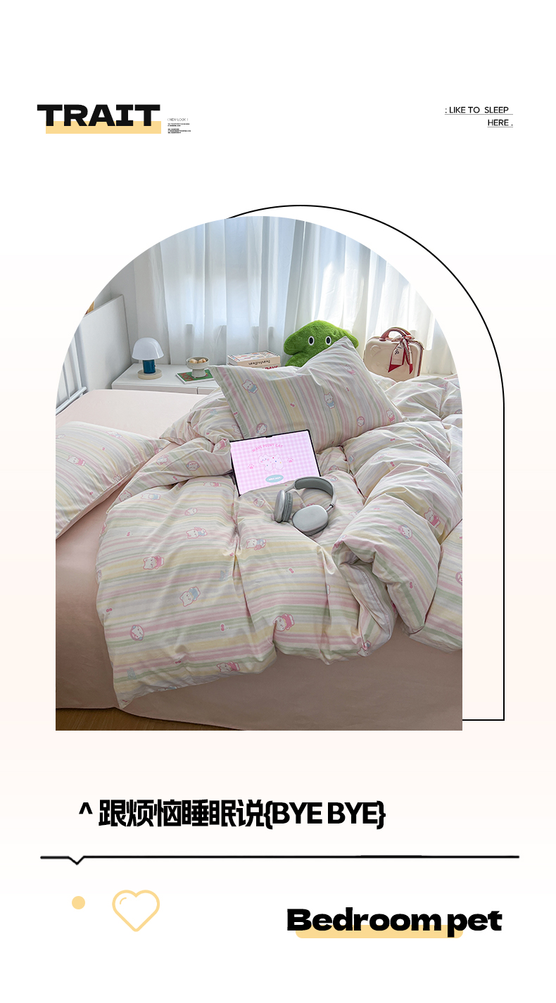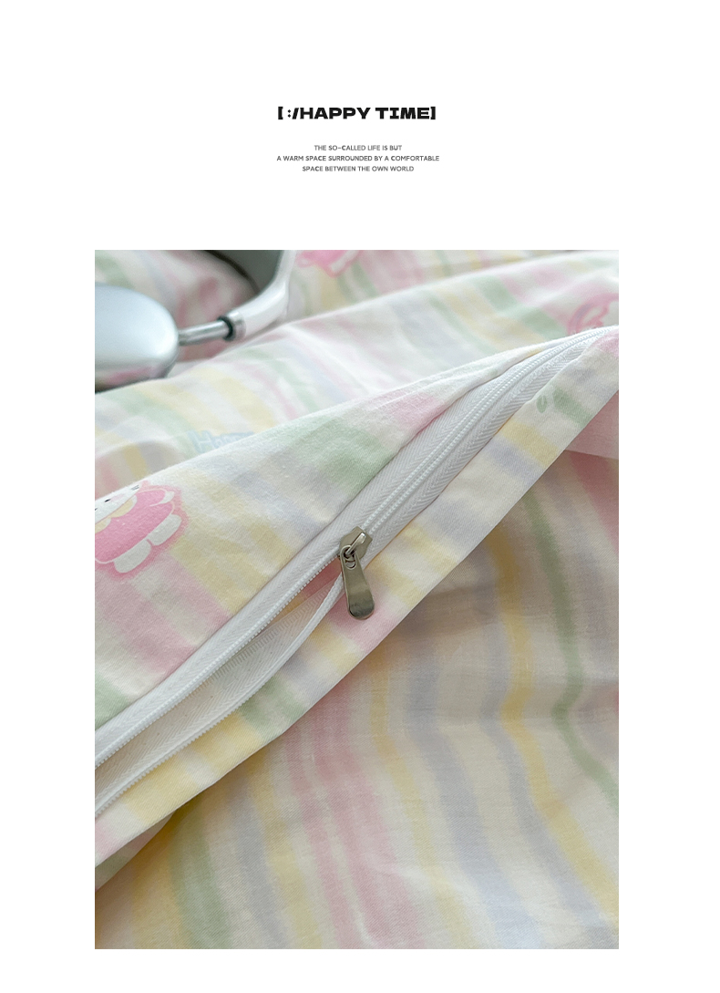 商品名称:早晨家纺 2026新款INS减龄可爱风卡通40支全棉纯棉色织水洗棉四件套 软糖彩虹小奶猫