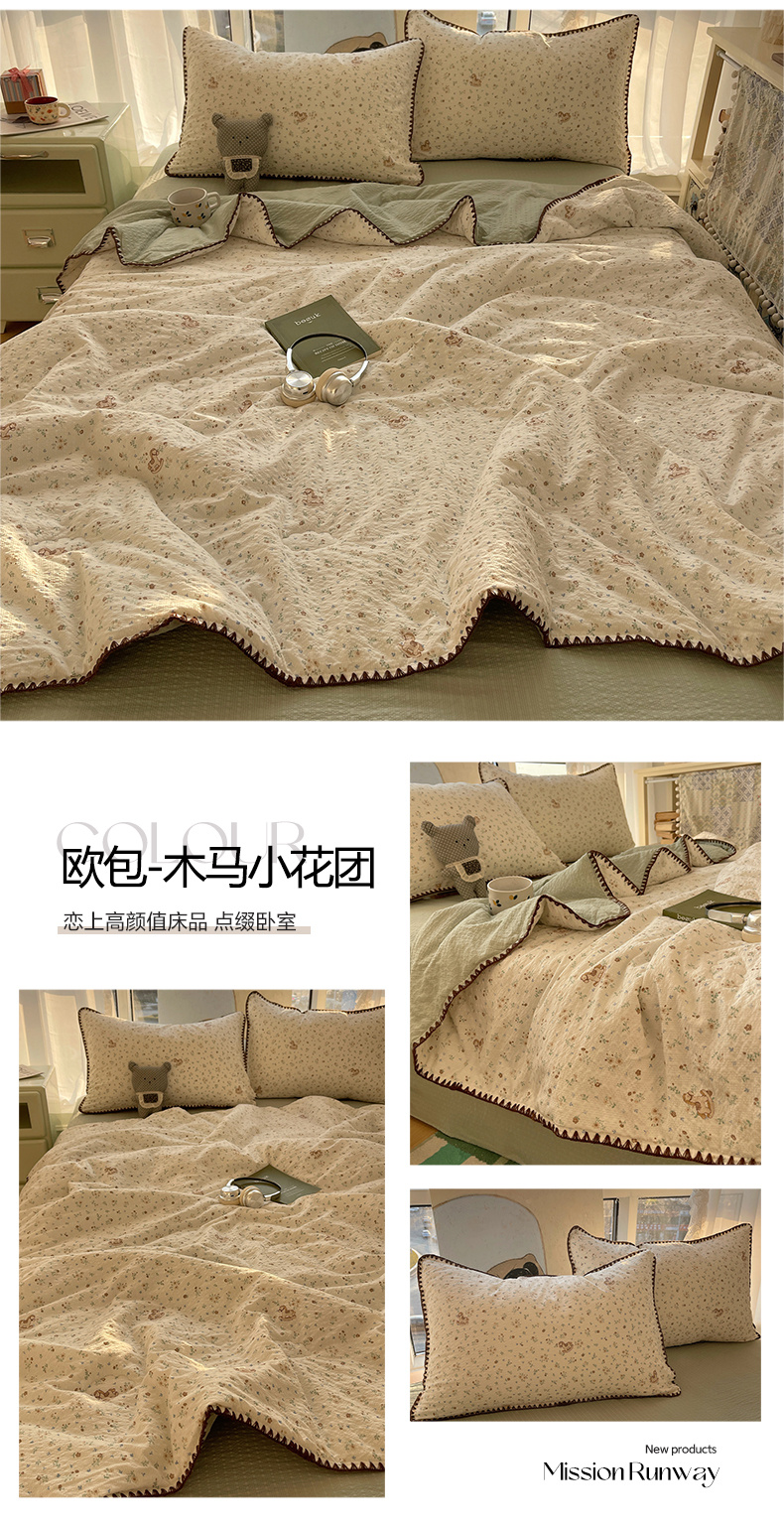 贝扬思家纺 2026新款泡芙纱贝壳边夏被套件-欧包系列(今天也只做被快乐包裹的小朋友) 欧包-木马小花团