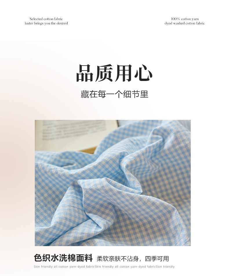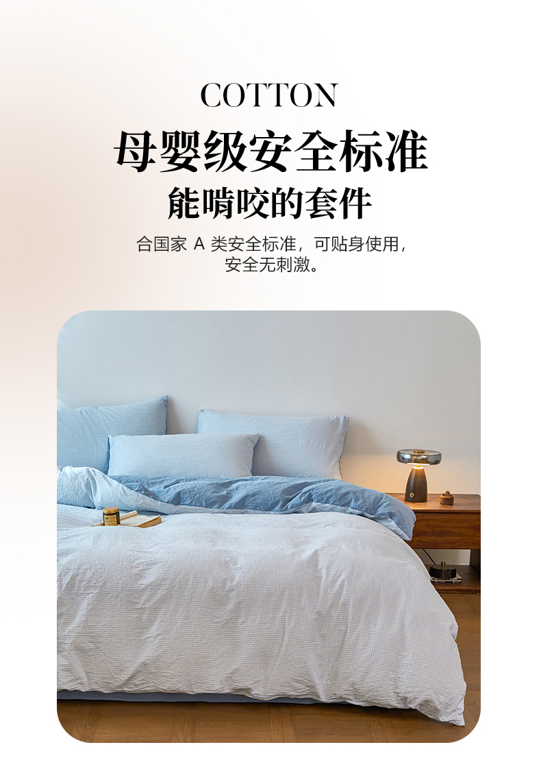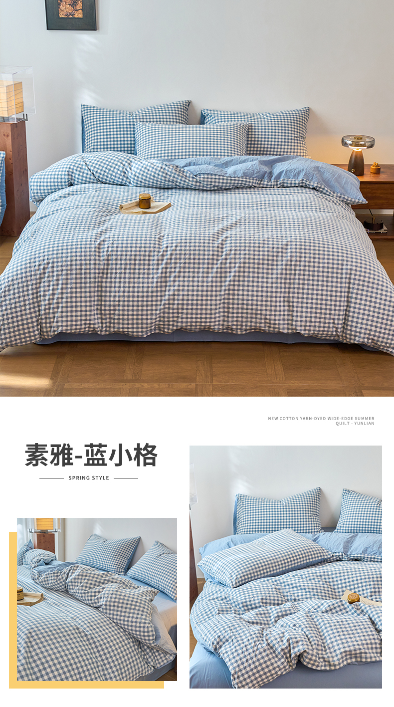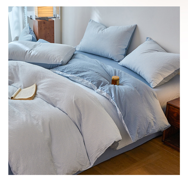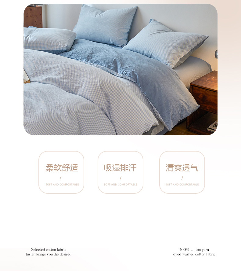 当前位置: 91家纺网 > 商品网购 > 床品套件 > 四件套 > 全棉普通四件套 > 春皖家纺 2026春夏新款全棉纯棉水洗棉四件套 月光蓝