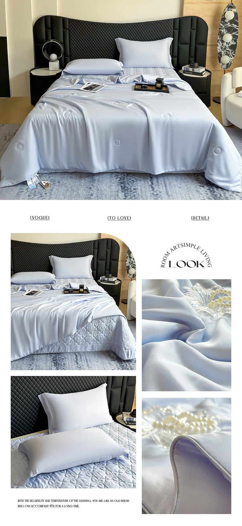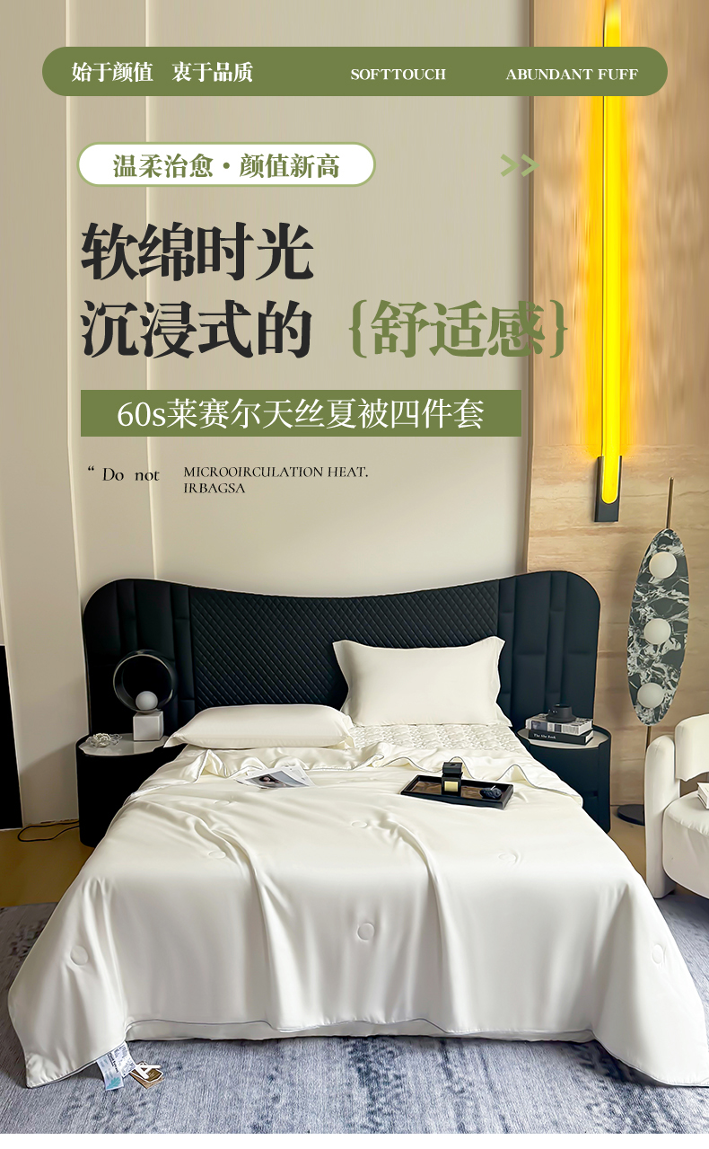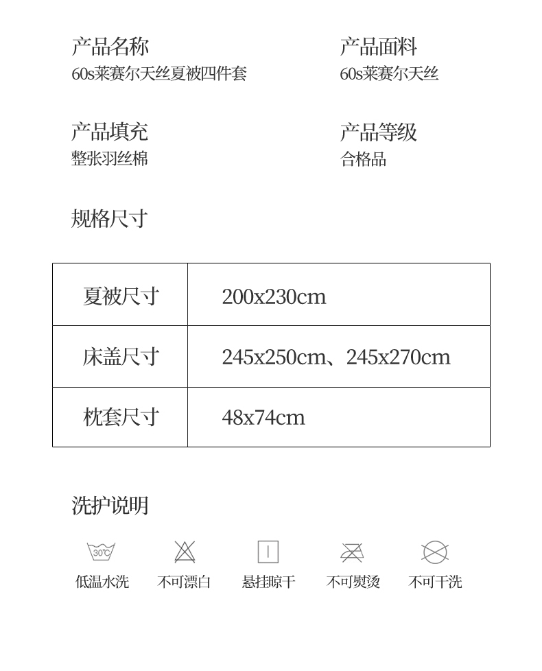 商品名称:(总)三俏家纺 2026新款夏被100%莱赛尔天丝纯色床盖款夏被四件套60支天丝夏凉被