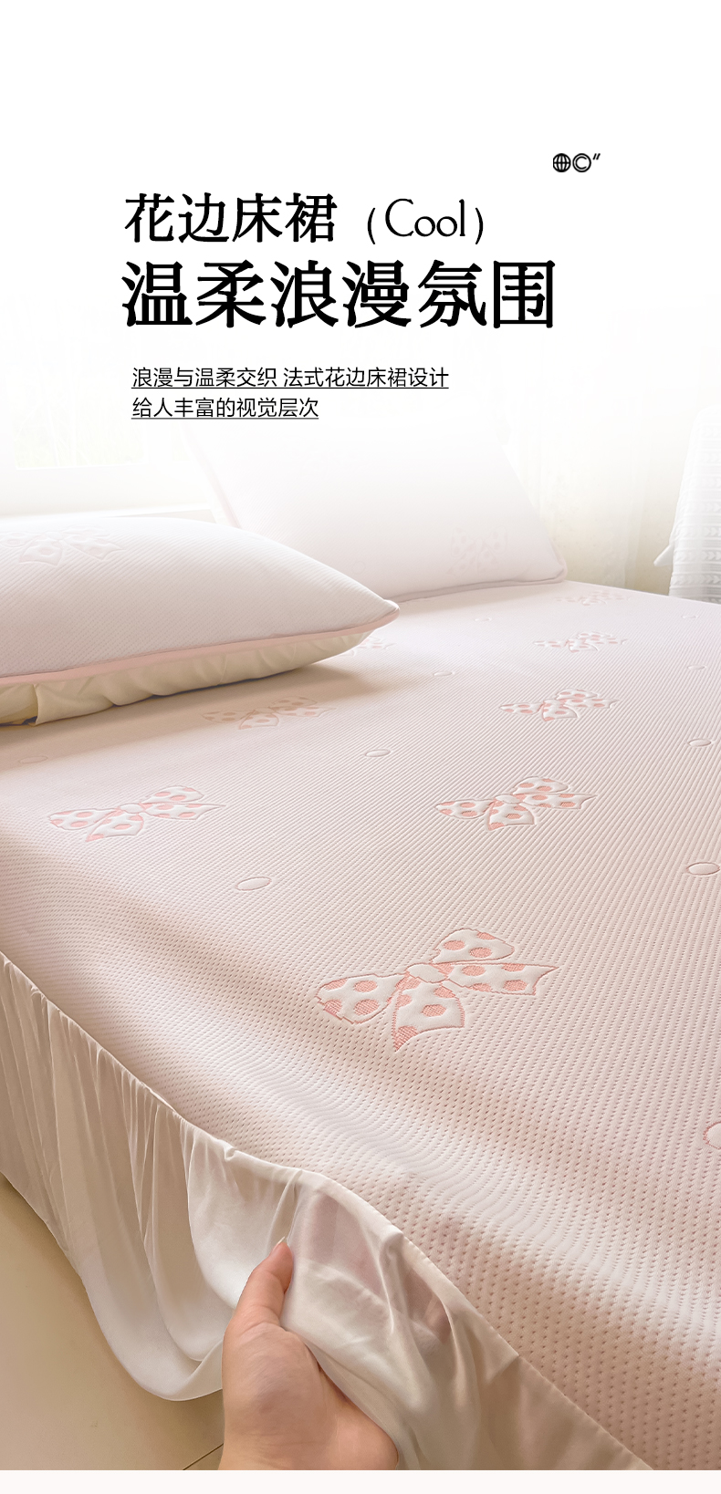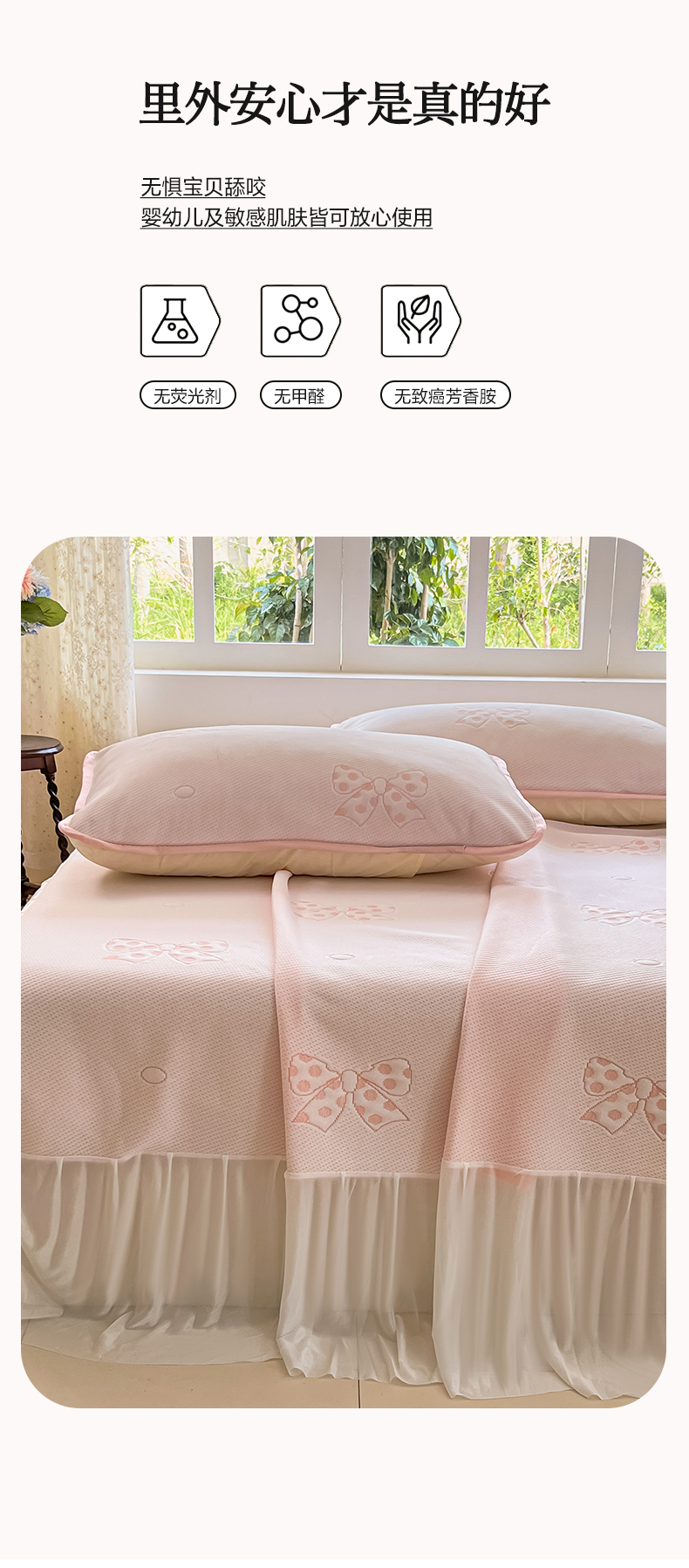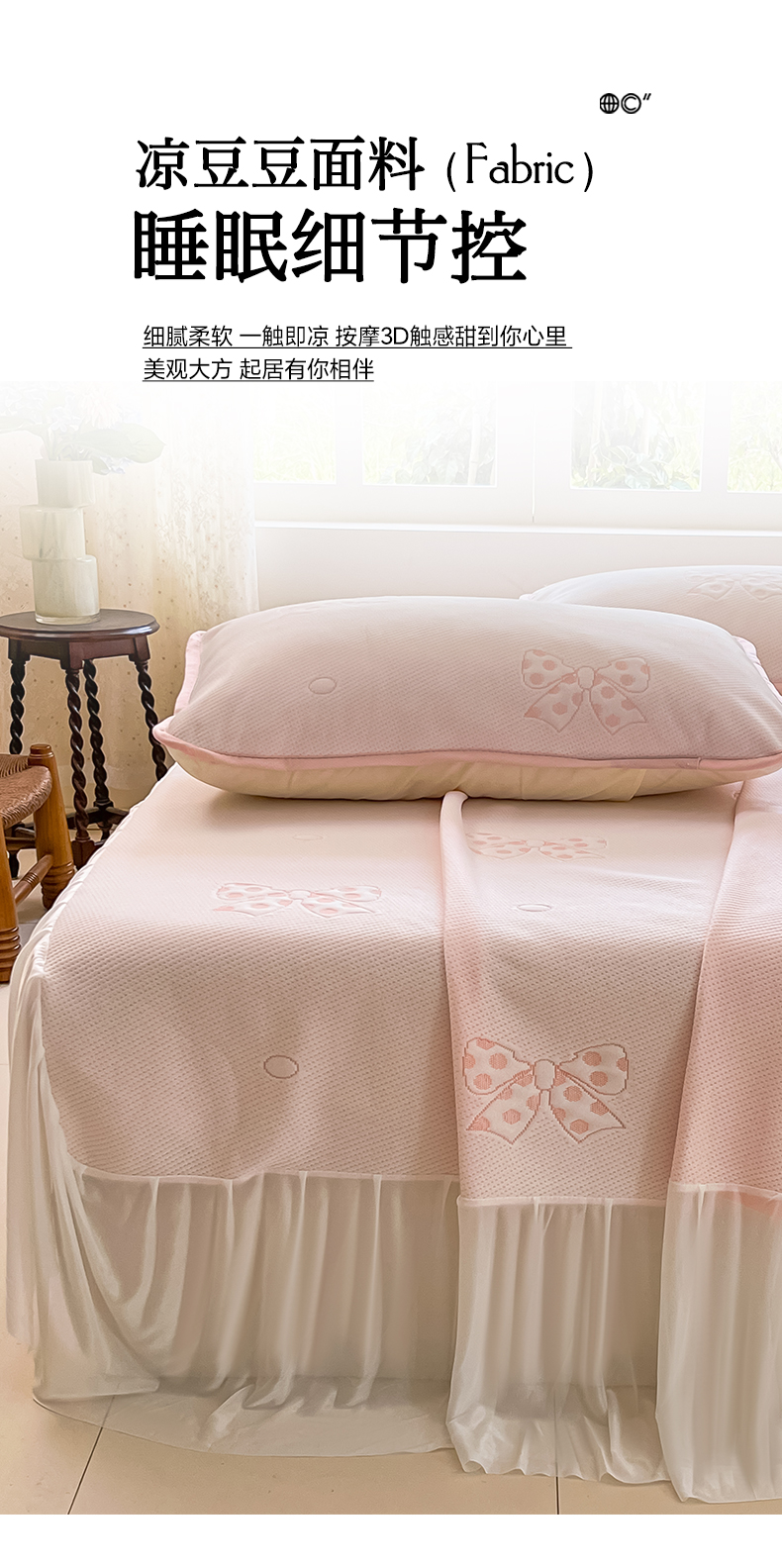 商品名称:悦织湾家纺 2026新款提花凉豆豆凉席三件套夏季3D豆豆席冰爽席子床裙款蝴蝶结小熊系列 床裙款-暴力熊粉