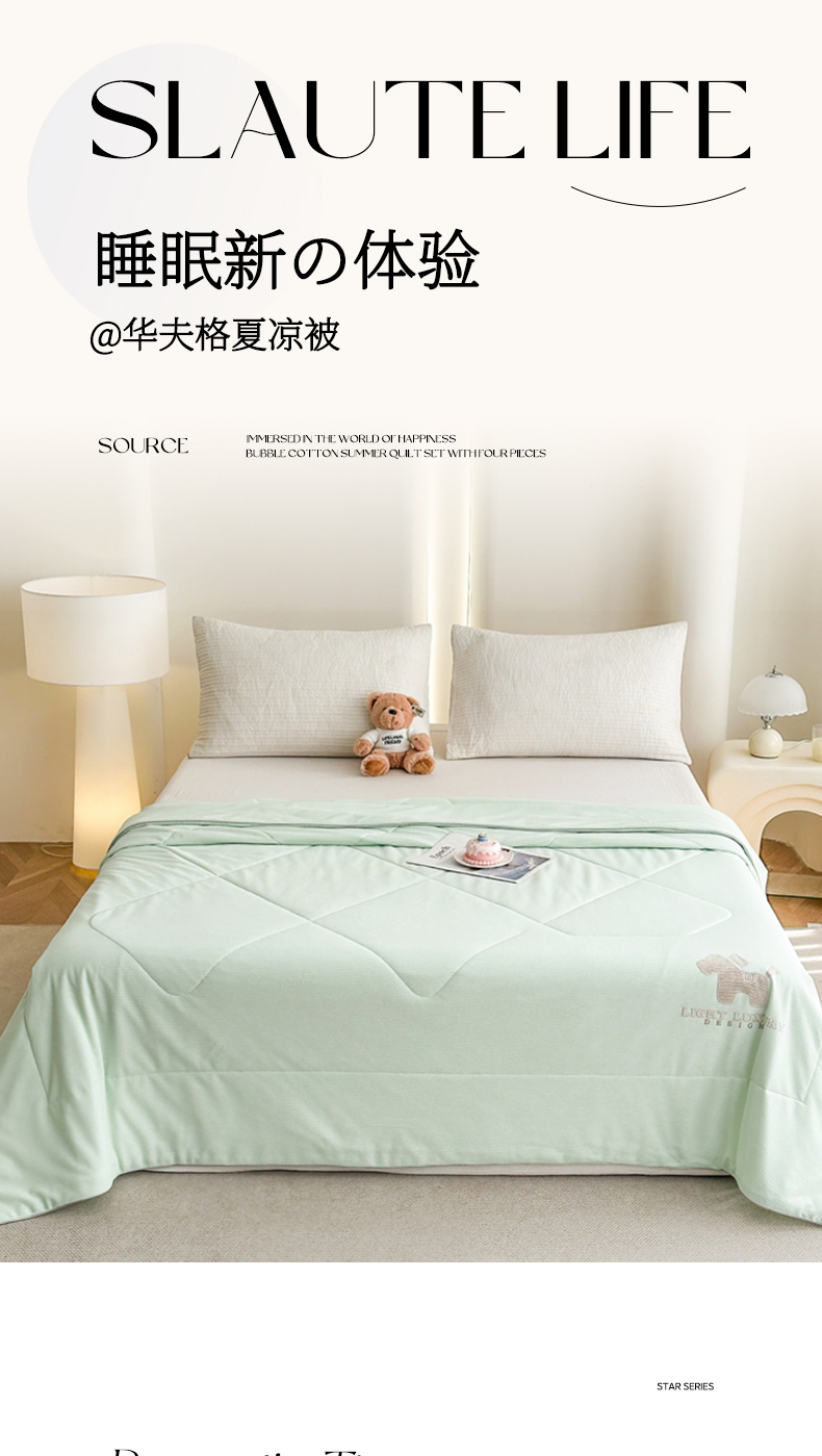 (总)宇淳国际 2026新款水洗棉荷叶边夏凉被夏被空调被,熊小窝,浅绿云烟,紫玲兰,叶影青踪,田园碎梦,蓝星絮语