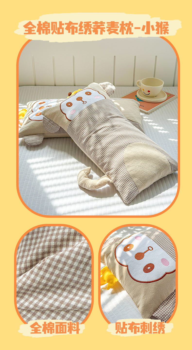 (总)梦叶草 2026新款全棉贴布绣荞麦枕,全棉贴布绣荞麦枕-企鹅,全棉贴布绣荞麦枕-猫咪,全棉贴布绣荞麦枕-猫头鹰,全棉贴布绣荞麦枕-小猴,全棉贴布绣荞麦枕-小熊