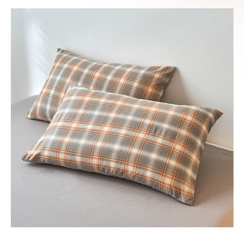 春皖家纺 2026春夏新款全棉水洗棉单枕套枕套单件单品枕套 栗木-咖格