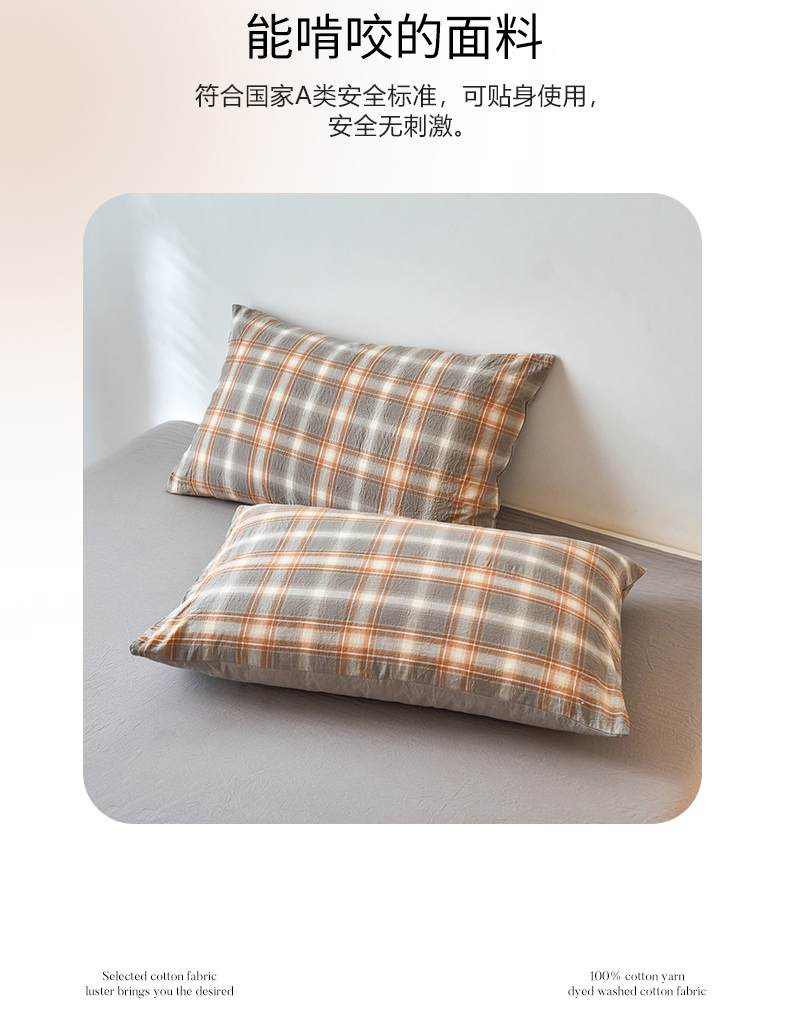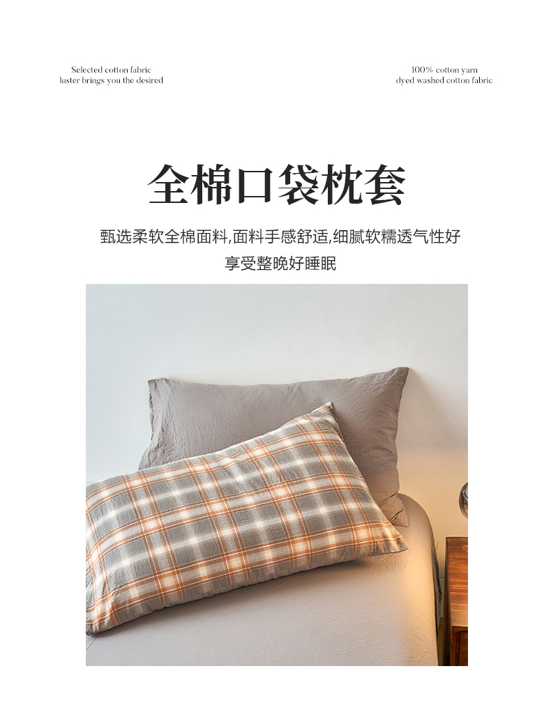 商品名称:春皖家纺 2026春夏新款全棉水洗棉单枕套枕套单件单品枕套 栗木-咖格