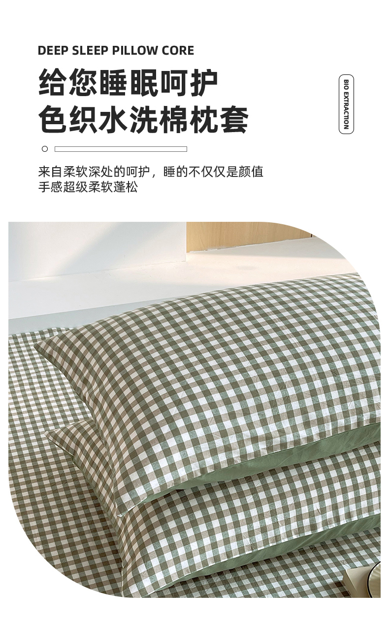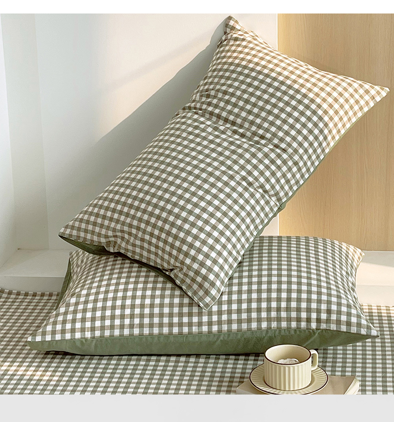 春皖家纺 2026春夏新款全棉水洗棉单枕套枕套单件单品枕套 素雅-绿格