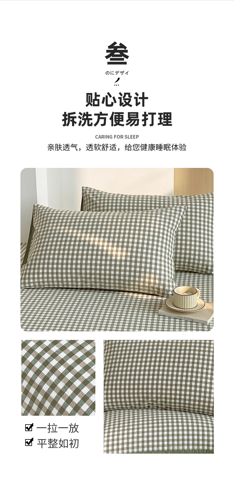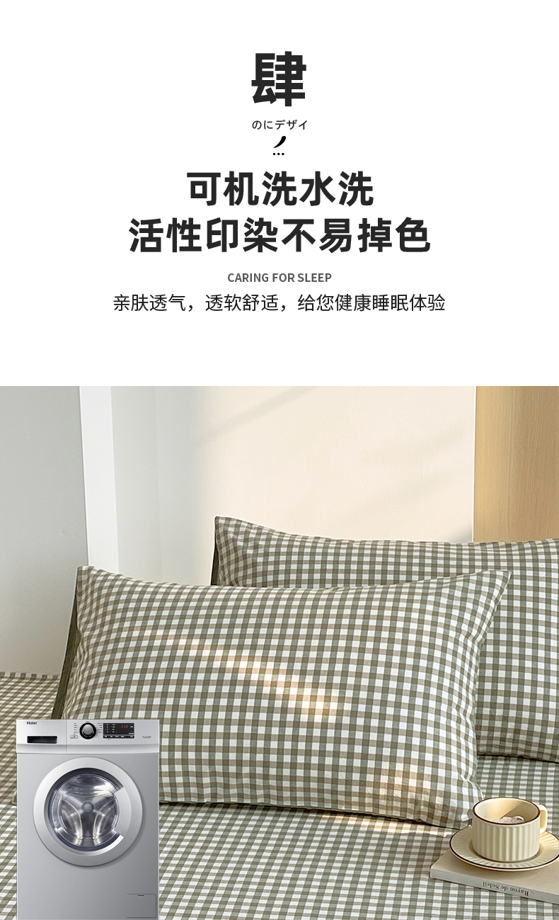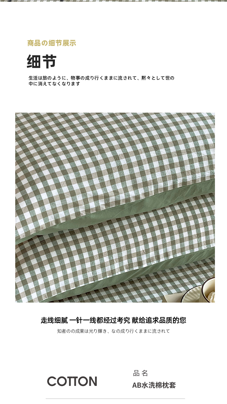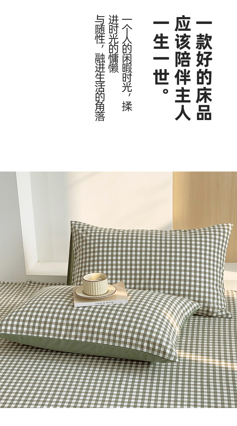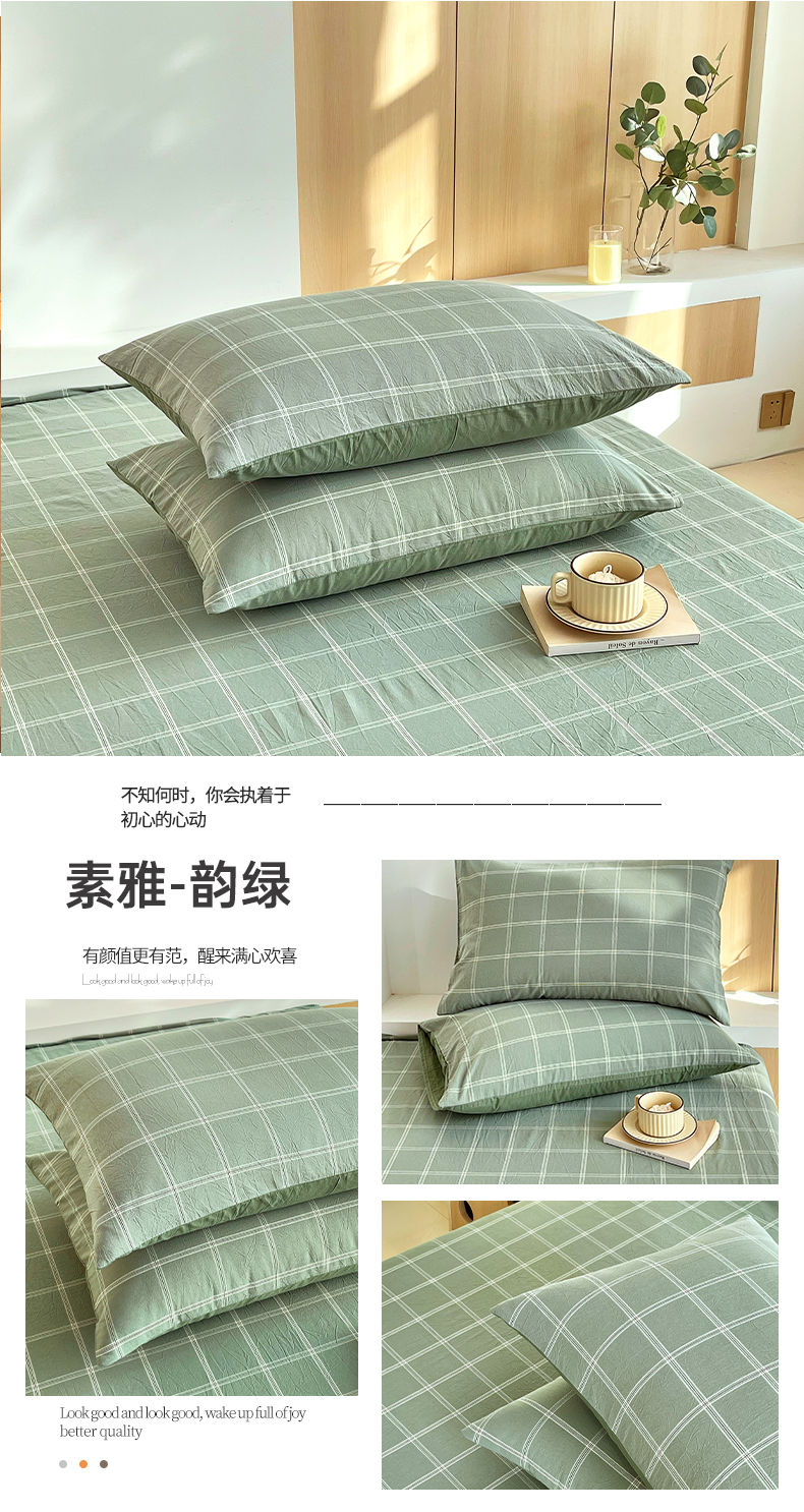 商品名称:春皖家纺 2026春夏新款全棉水洗棉单枕套枕套单件单品枕套 素雅-绿格