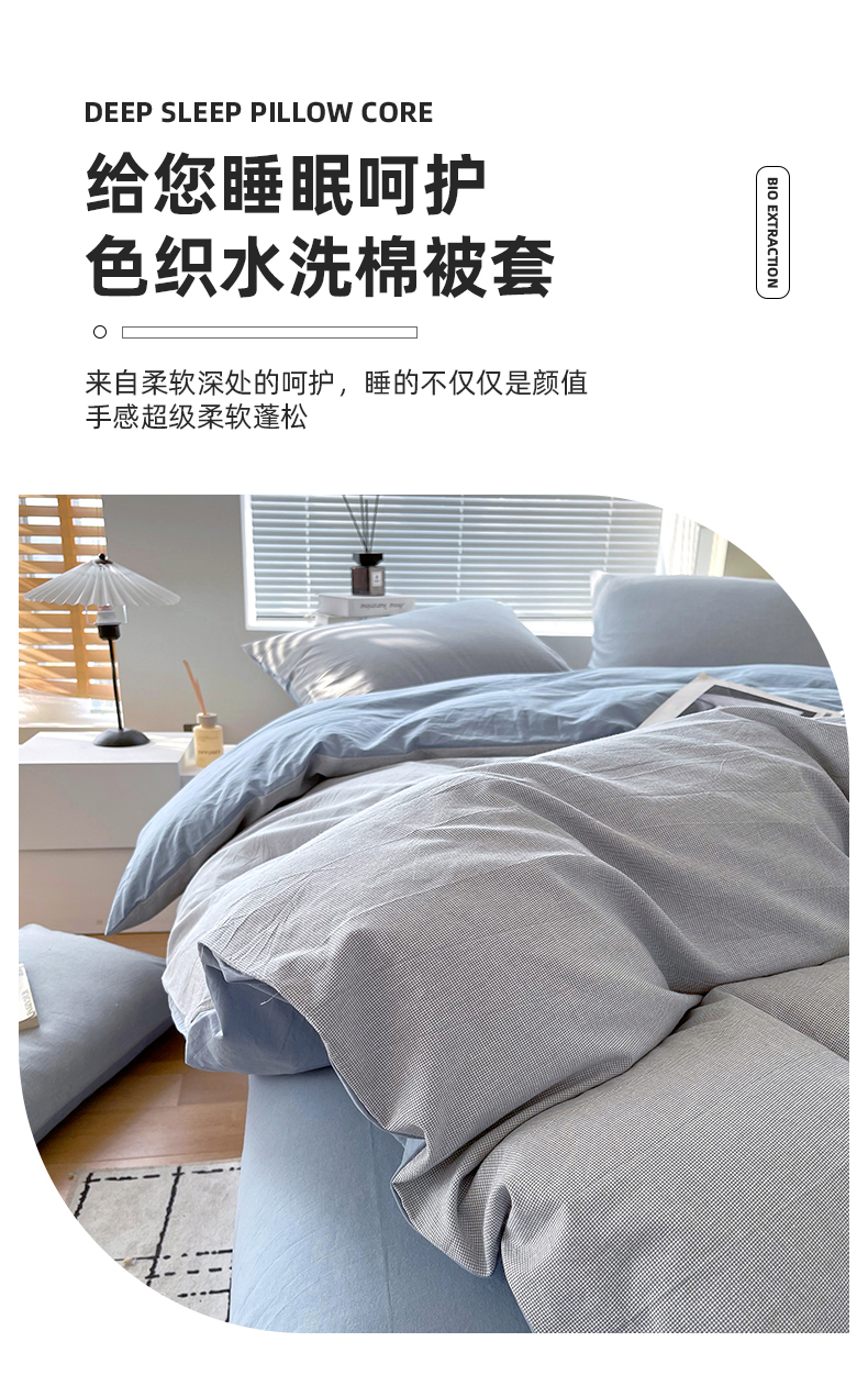 商品名称:春皖家纺 2026春夏新款全棉纯棉水洗棉单被套被套单件单品被套 细条蓝