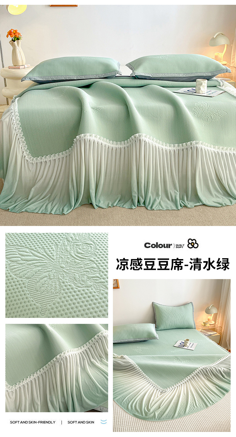 (总)安哆啦家纺 2026新款公主仙女风480克PE凉感凉豆豆床裙凉席三件套-豆豆床裙,豆豆床裙-果绿,豆豆床裙-清水绿,豆豆床裙-绅士灰,豆豆床裙-深邃蓝,豆豆床裙-仙女粉,豆豆床裙-香槟金