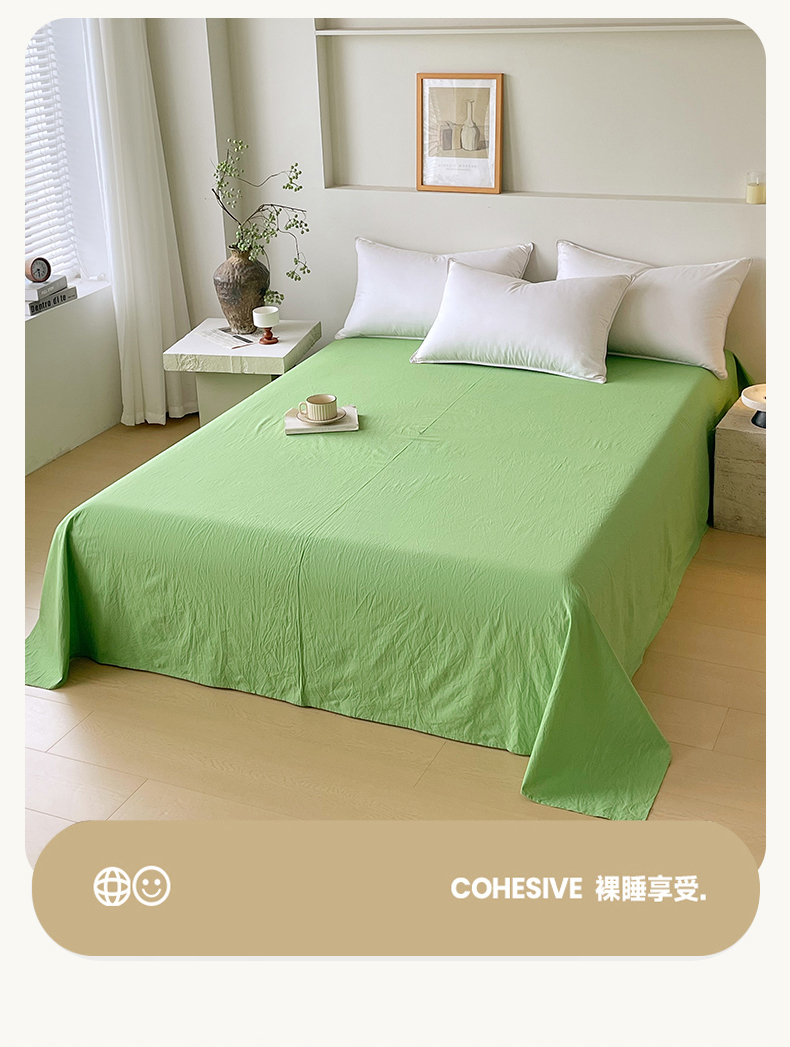 春皖家纺 2026春夏新款全棉纯棉水洗棉单品系列床单单件床单单品-B版单床单 青草绿