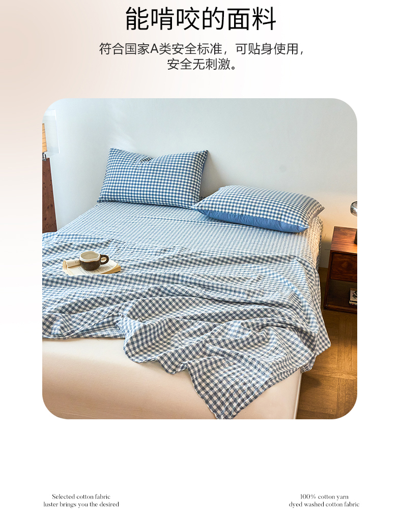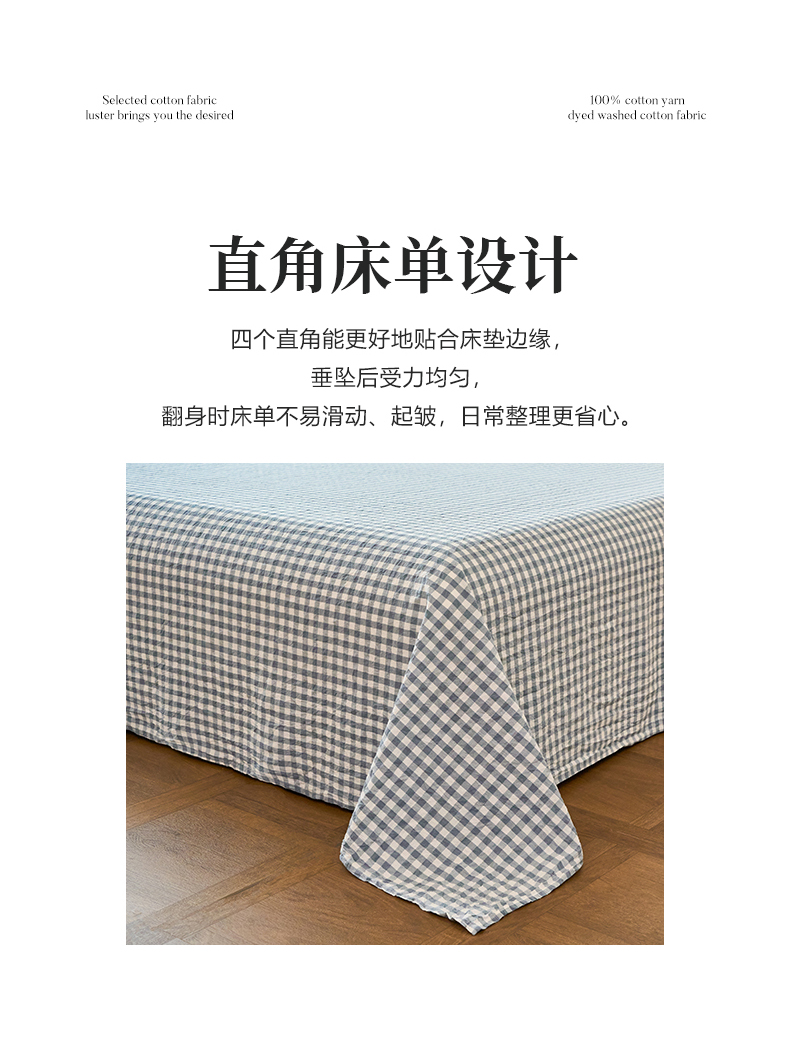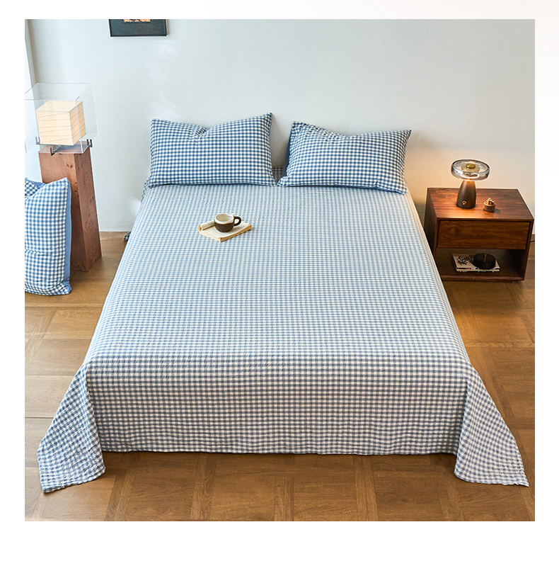 春皖家纺 2026春夏新款全棉纯棉水洗棉单品系列床单单件床单单品-A版单床单 素雅-蓝小格