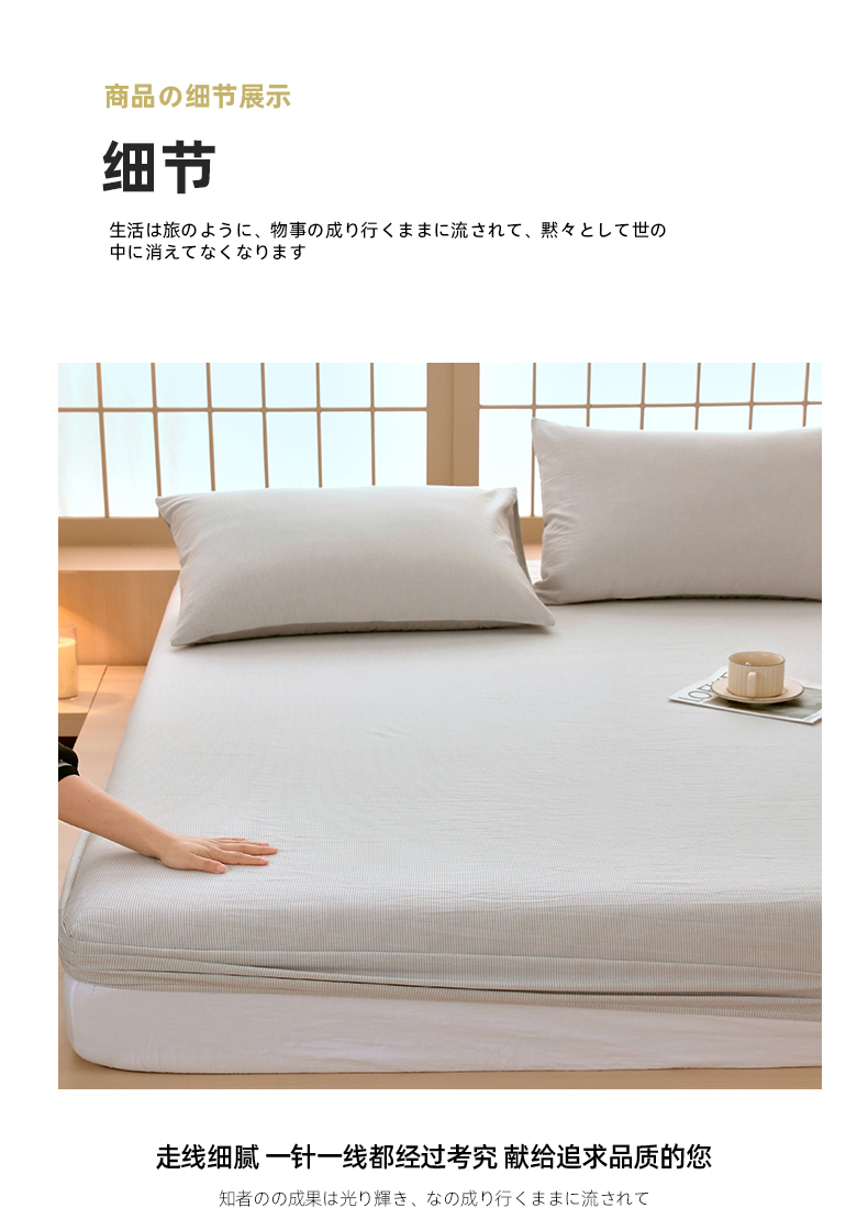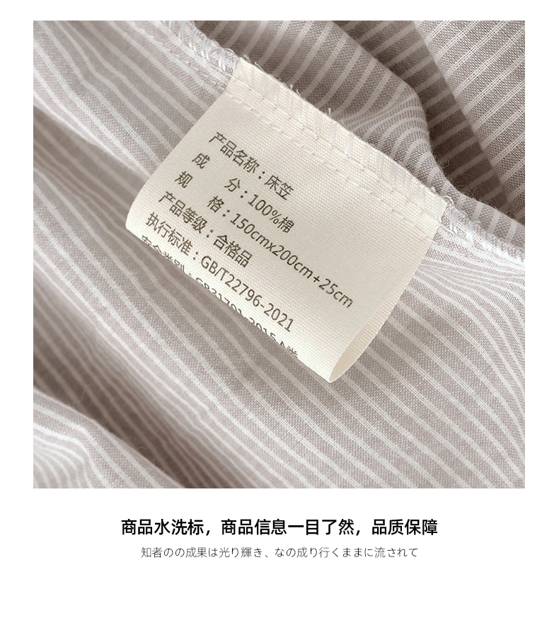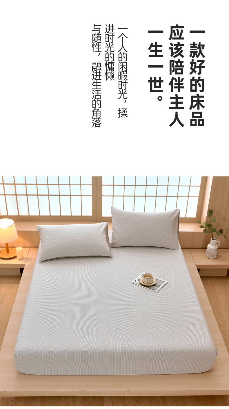 商品名称:春皖家纺 2026春夏新款全棉纯棉水洗棉单品系列床笠单件床笠单品-A版单床笠 细条灰