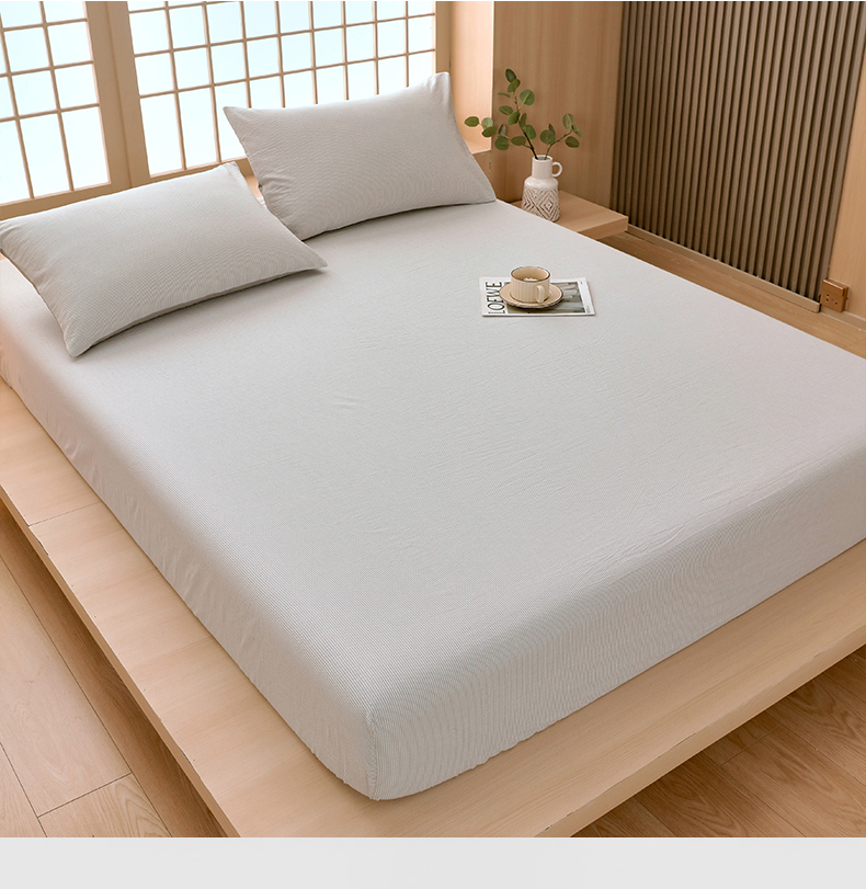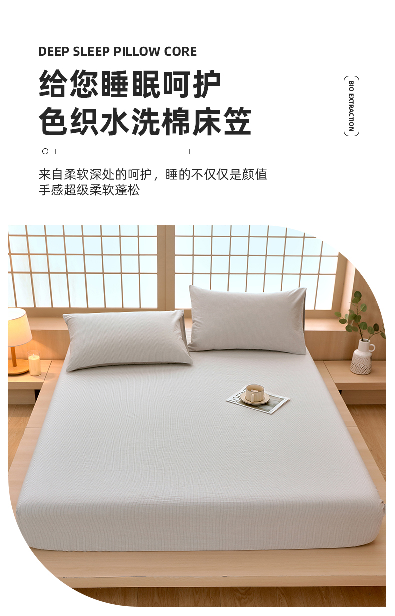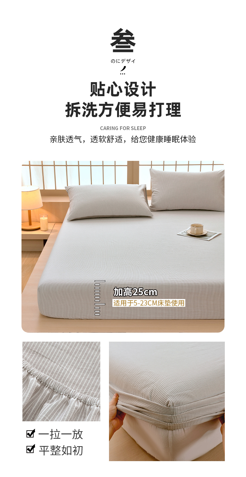 春皖家纺 2026春夏新款全棉纯棉水洗棉单品系列床笠单件床笠单品-A版单床笠 细条灰