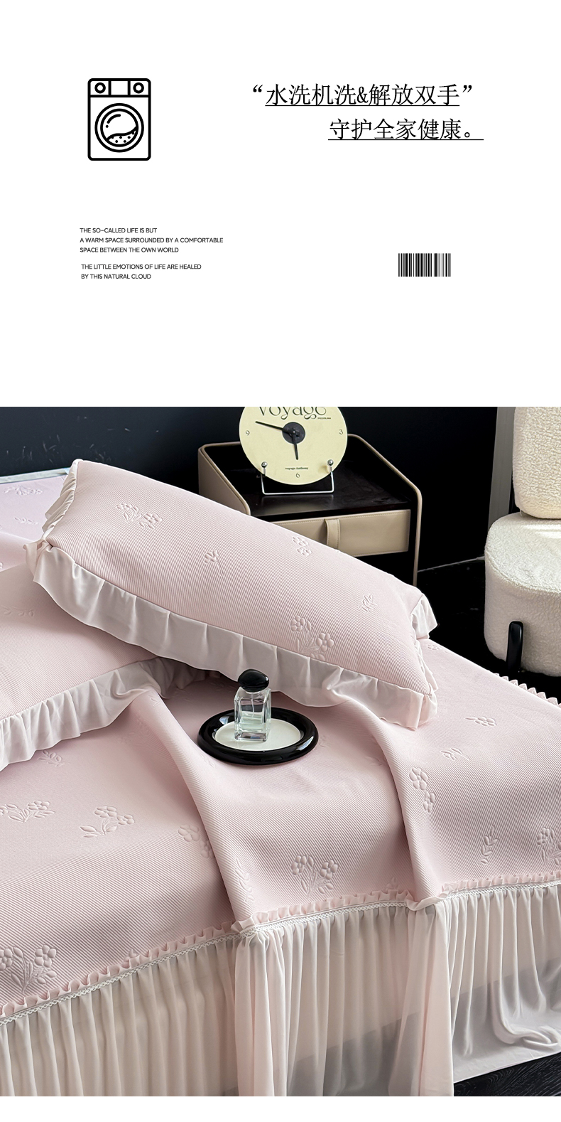商品名称:宅家居 2026春夏新款PE高分子复合软凉席豆豆席大床裙三件套-小花系列 小花-粉色