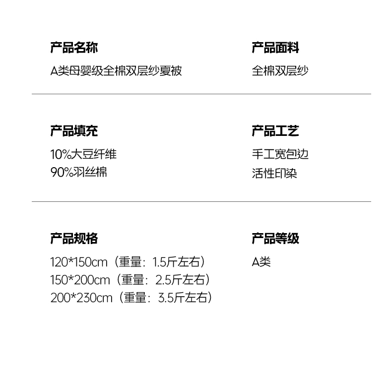 商品名称:(总)暖生活 2026新款A类母婴级全棉双层纱夏被