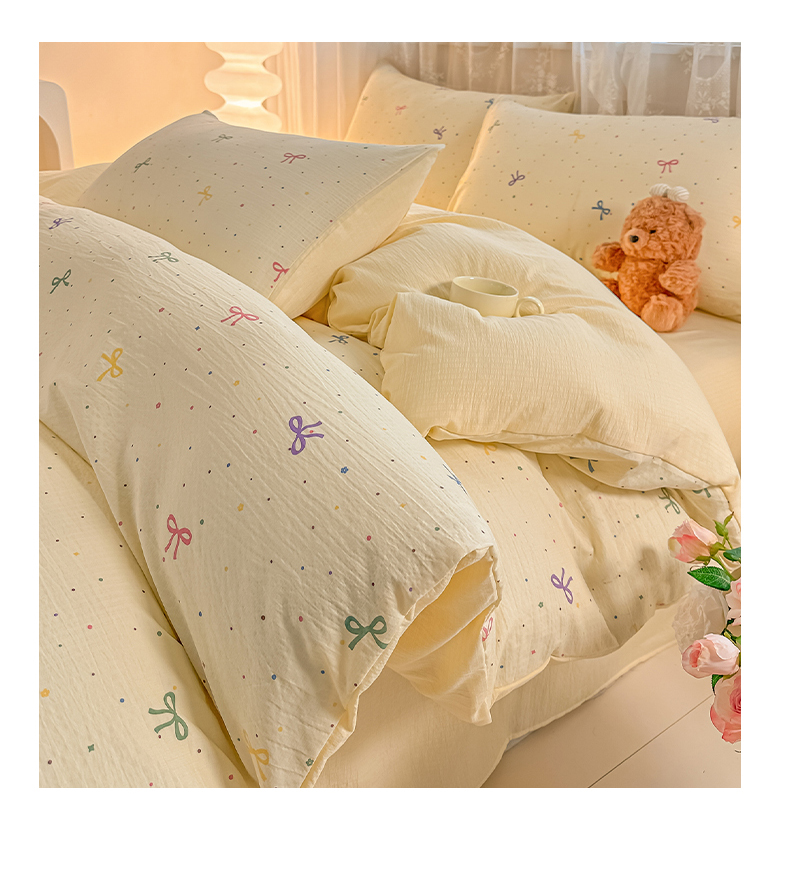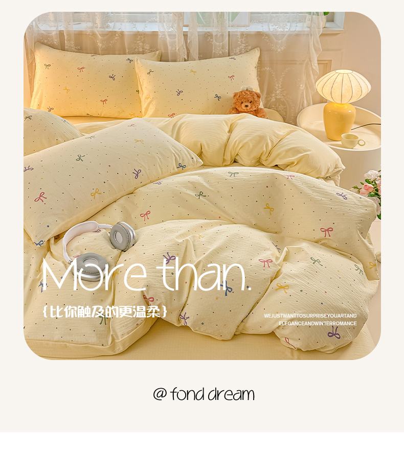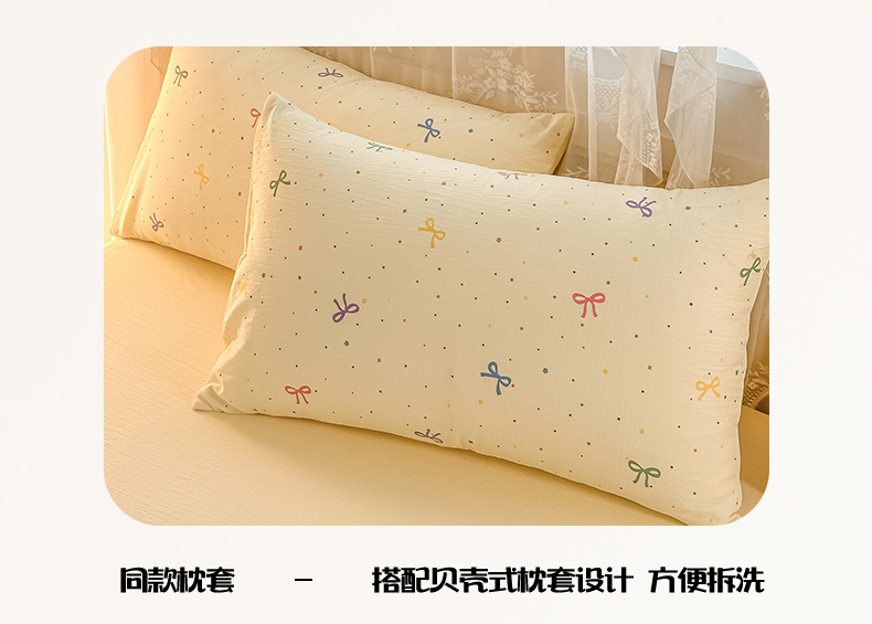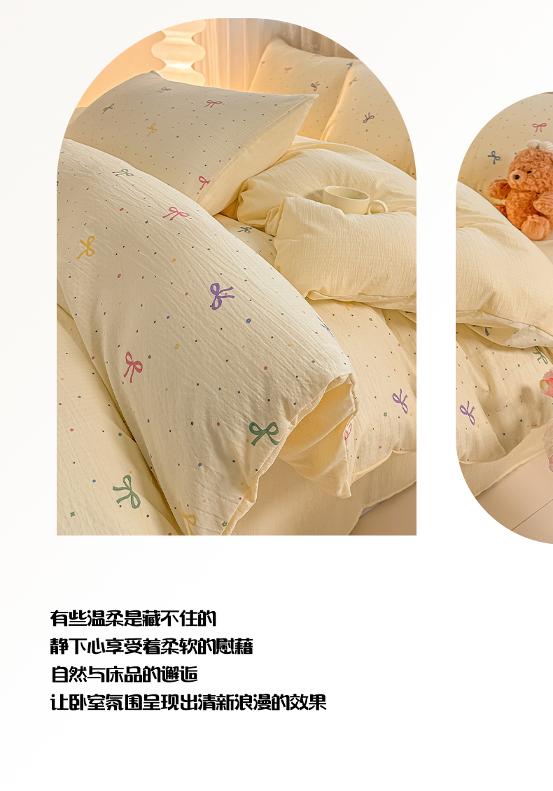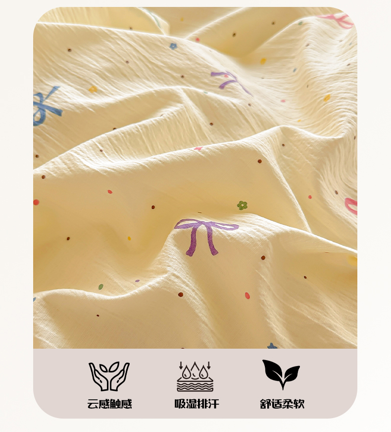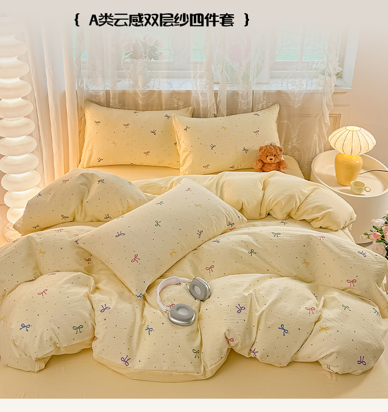 当前位置: 91家纺网 > 商品网购 > 床品套件 > 四件套 > 其它四件套 > 侯先生家纺新款直播爆款云感双层纱皱皱纱四件套小清新水洗棉床笠 甜系小蝶