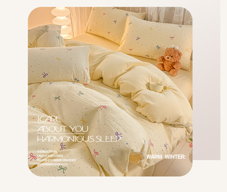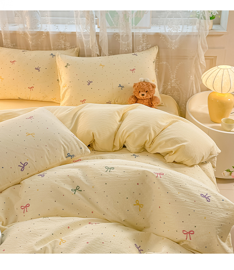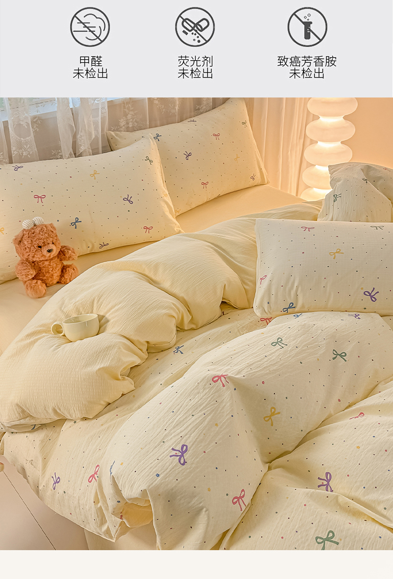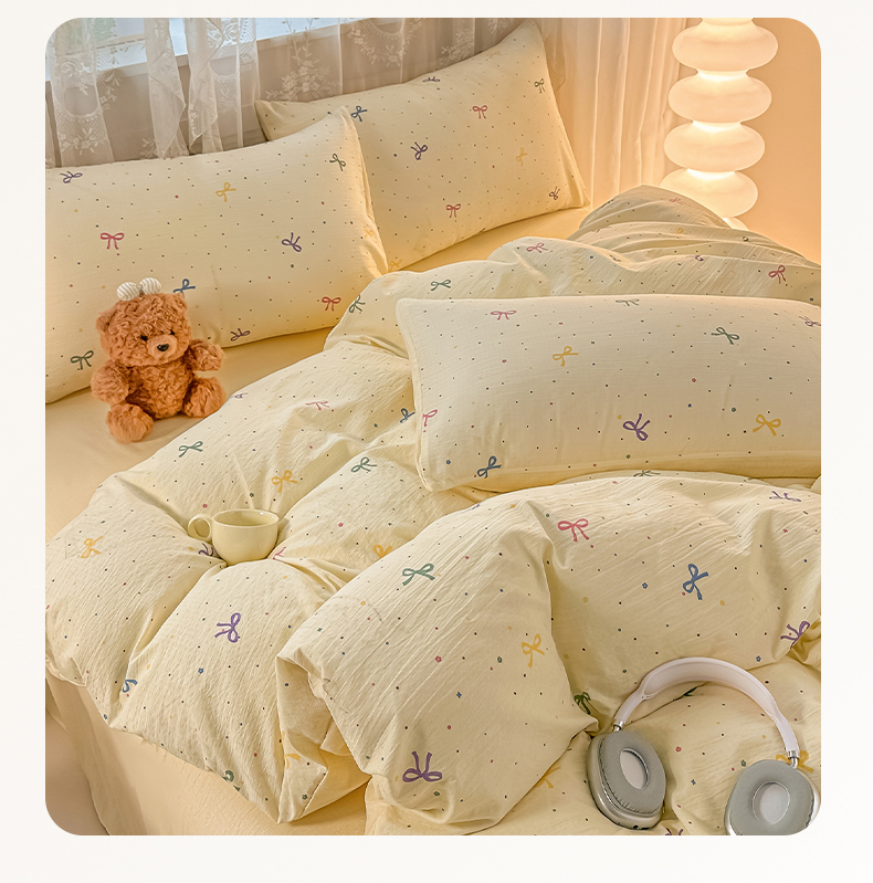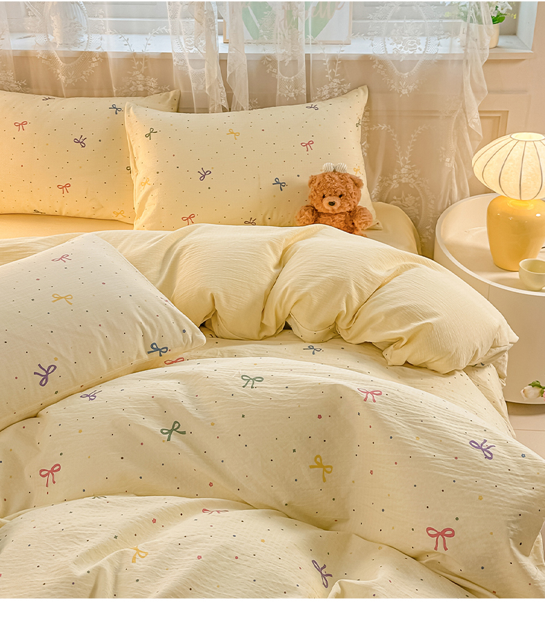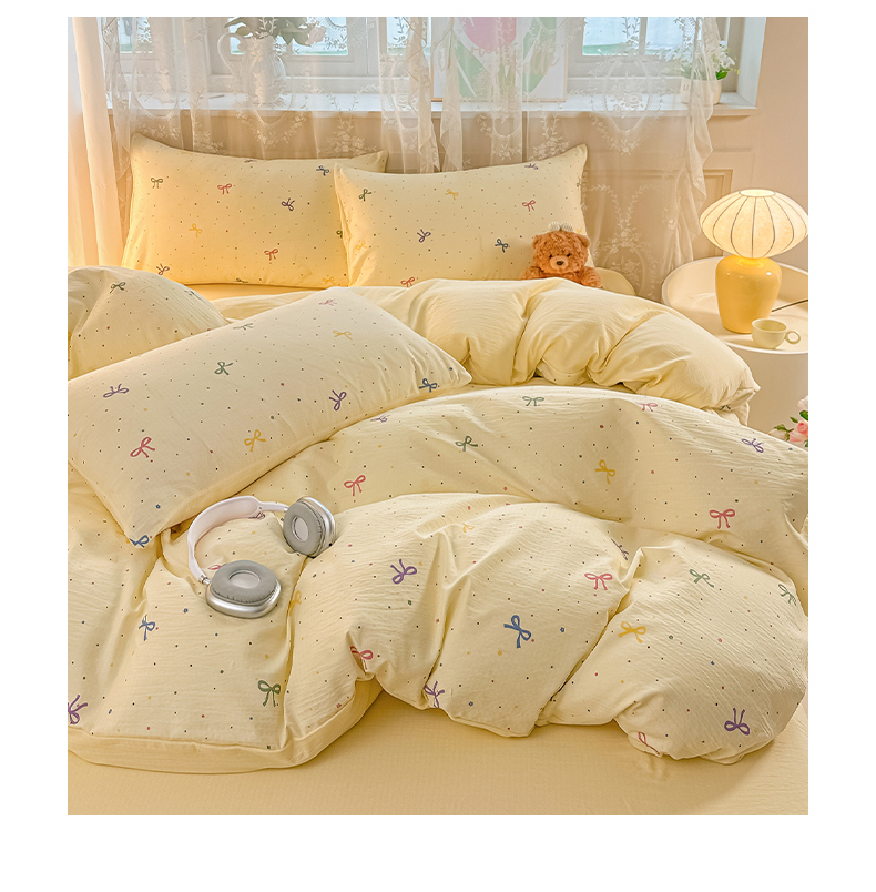当前位置: 91家纺网 > 商品网购 > 床品套件 > 四件套 > 其它四件套 > 侯先生家纺新款直播爆款云感双层纱皱皱纱四件套小清新水洗棉床笠 甜系小蝶