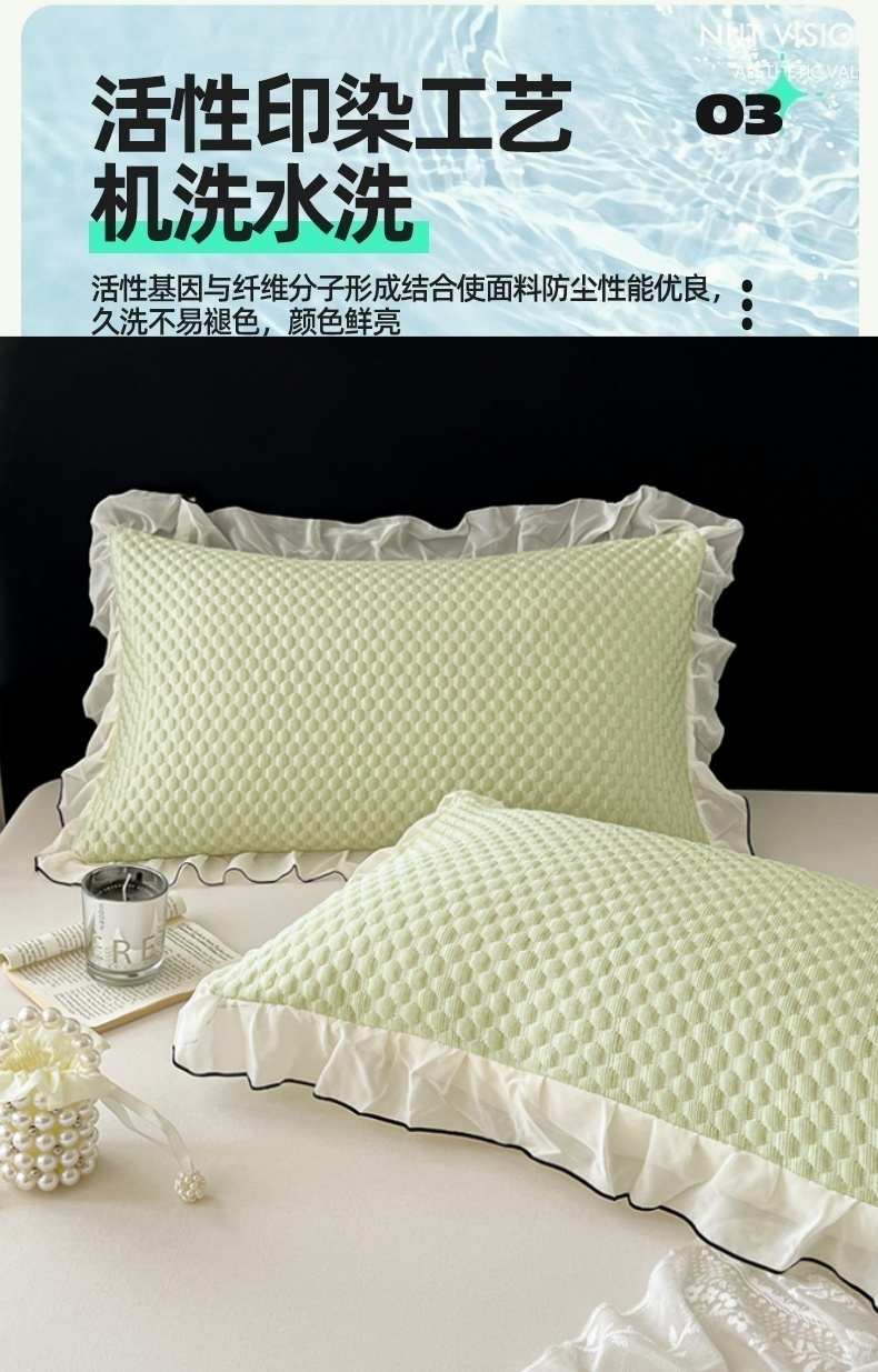 (总)梦舒羽 2026新款A类凉感冰豆豆凉席花边冰丝枕套情侣双人1.8m枕头套加长枕芯套,凉豆豆-清澈绿,凉豆豆-仙气粉,凉豆豆-宝石蓝,凉豆豆-海盐灰