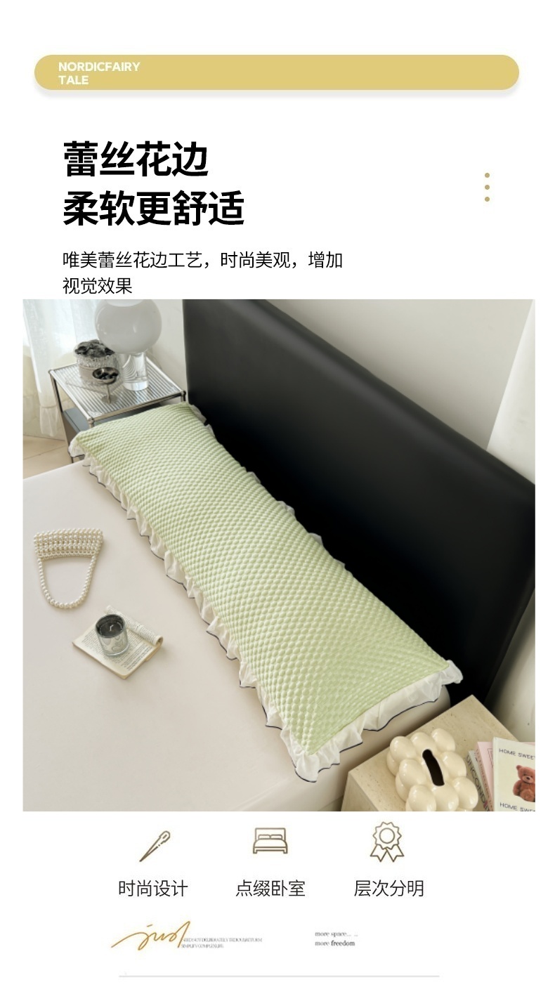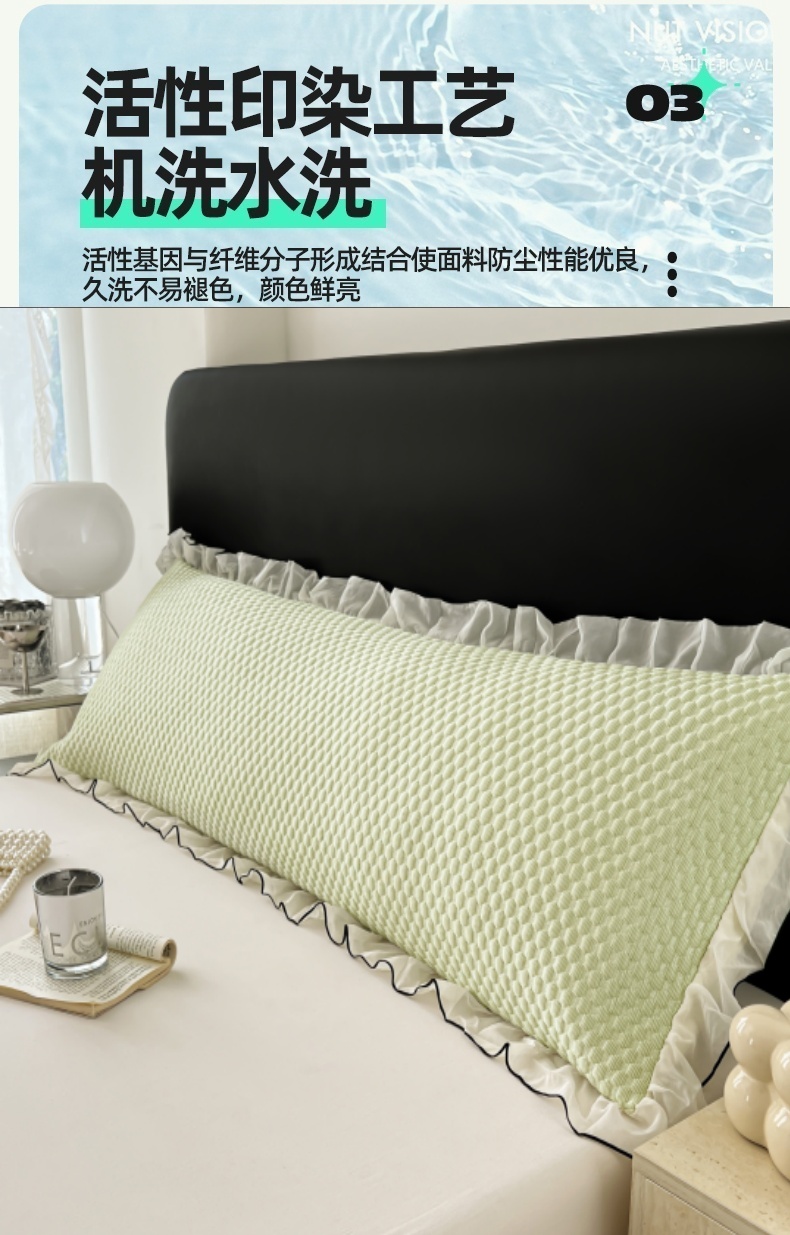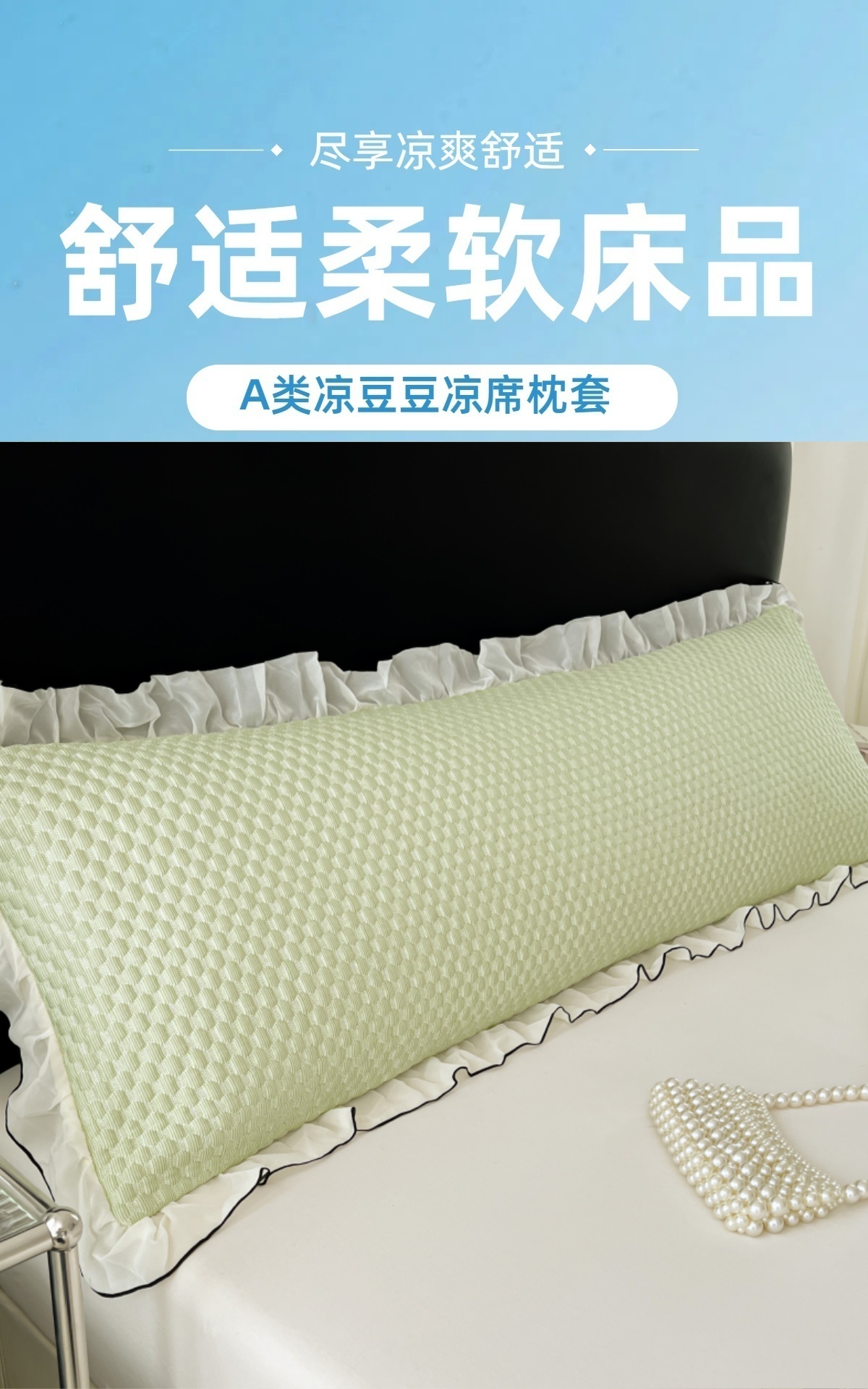 商品名称:梦舒羽 2026新款A类凉感冰豆豆凉席花边冰丝枕套情侣双人1.8m枕头套加长枕芯套 凉豆豆-清澈绿