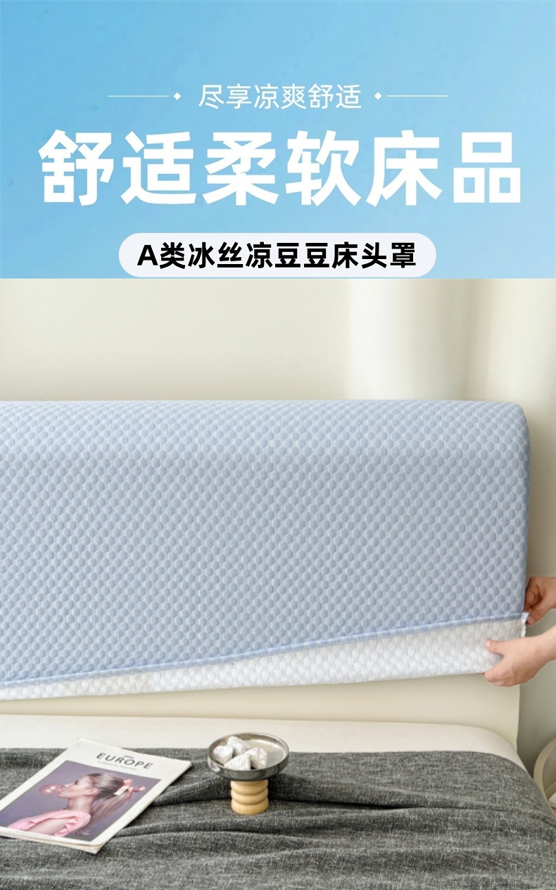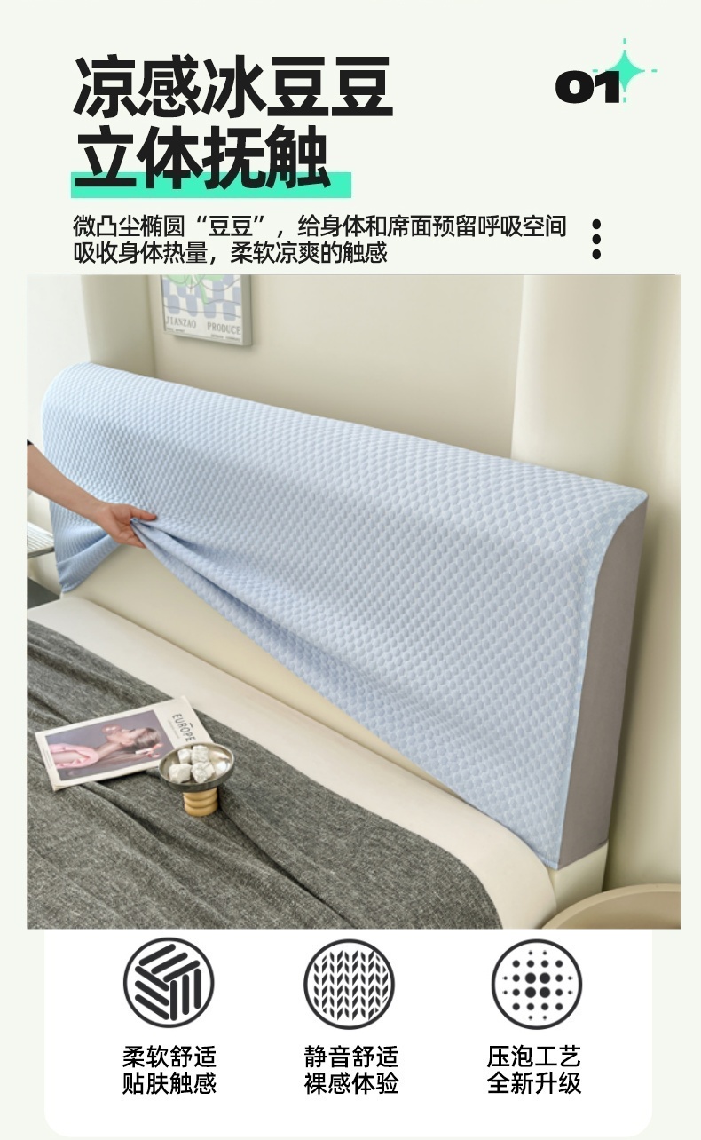(总)梦舒羽 2026新款A类凉感冰豆豆凉席床头罩靠背套-有外贸尺寸可以联系,凉豆豆-清澈绿,凉豆豆-仙气粉,凉豆豆-宝石蓝,凉豆豆-海盐灰