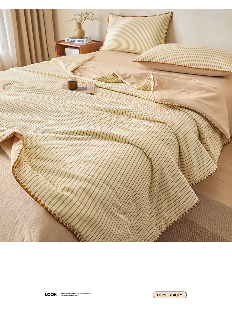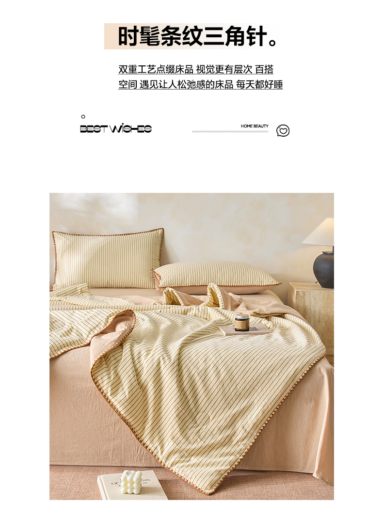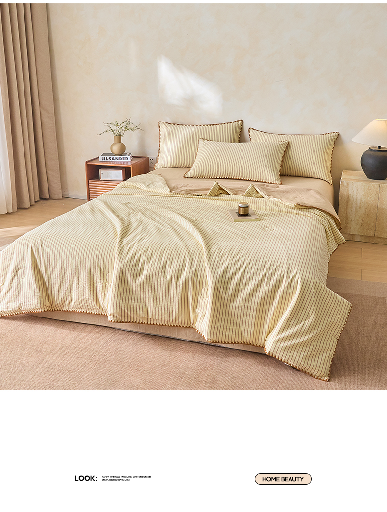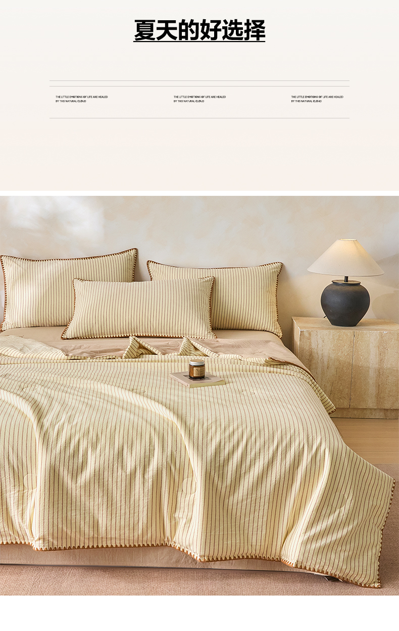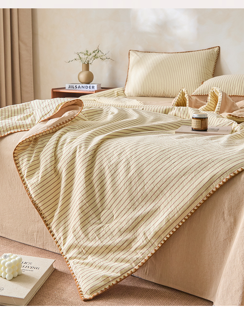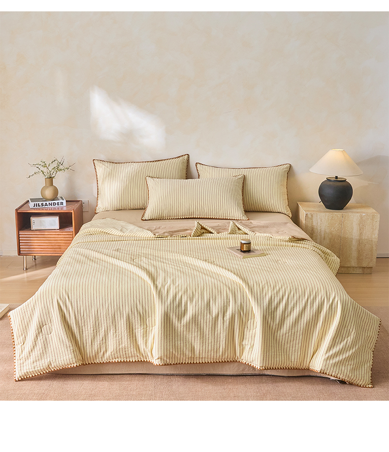 当前位置: 91家纺网 > 商品网购 > 床品套件 > 四件套 > 夏被四件套 > 如一 2026新款全棉色织水洗棉条纹三角针夏被四件套 晴空黄