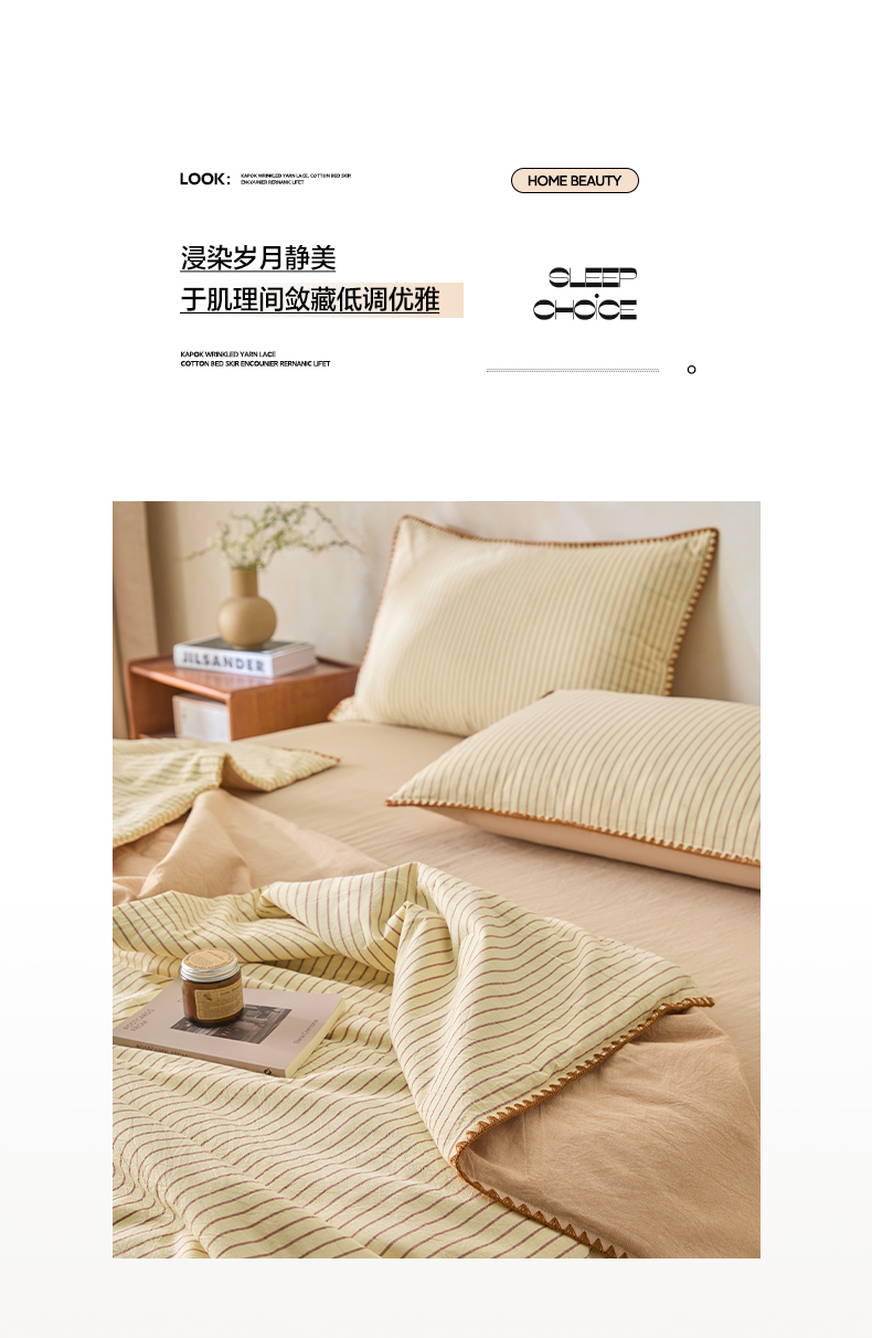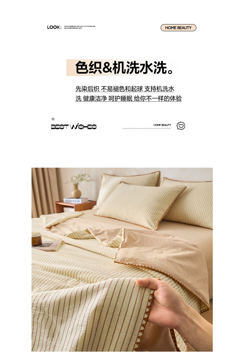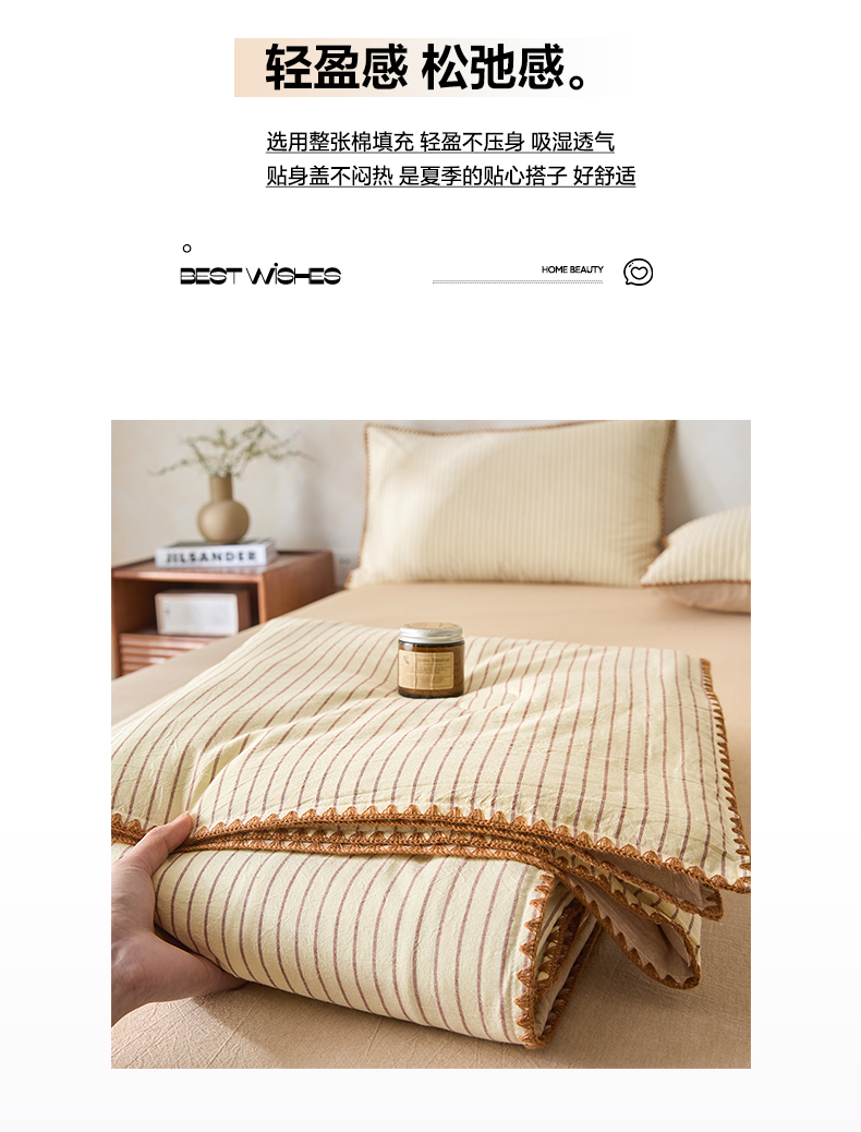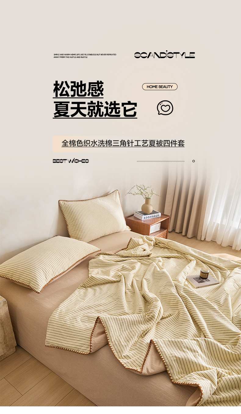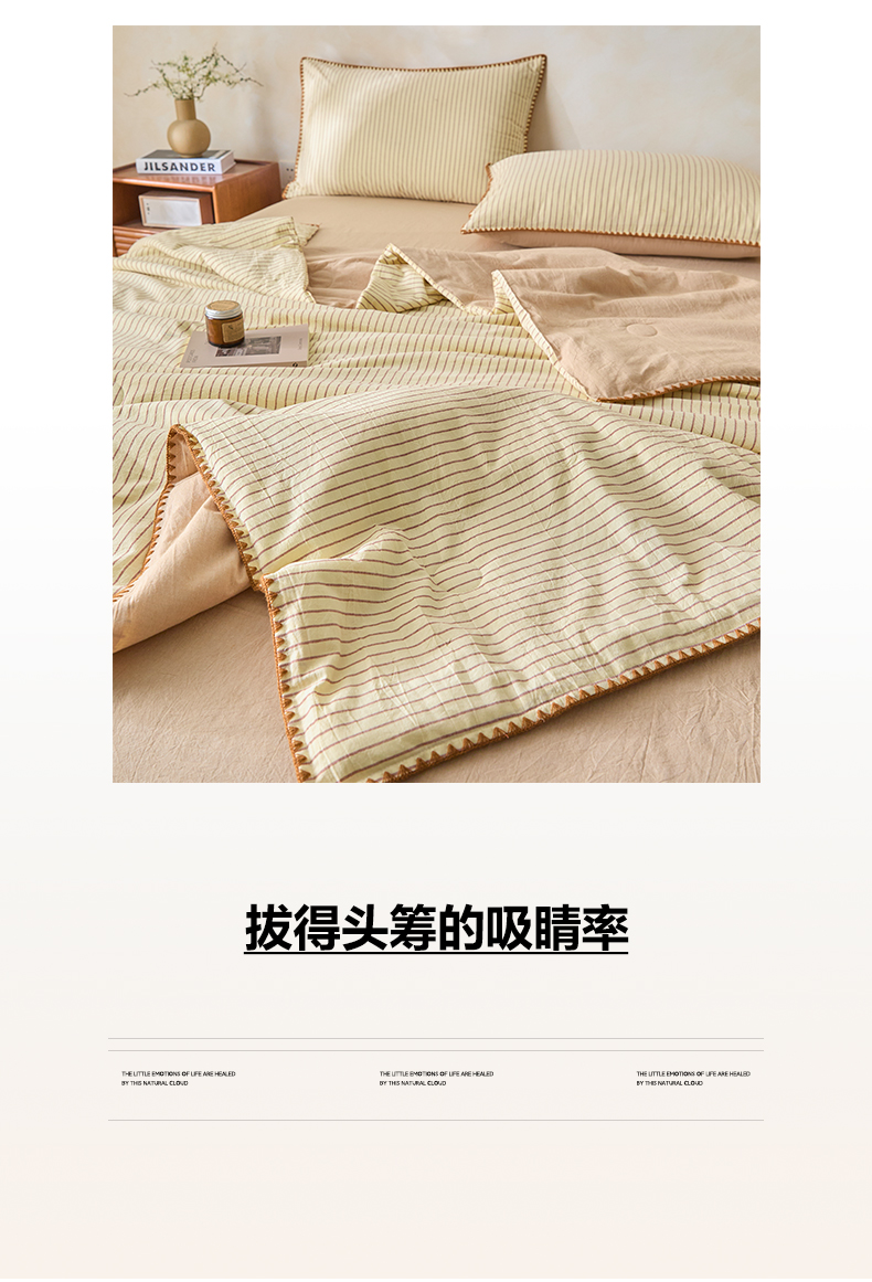 当前位置: 91家纺网 > 商品网购 > 床品套件 > 四件套 > 夏被四件套 > 如一 2026新款全棉色织水洗棉条纹三角针夏被四件套 晴空黄