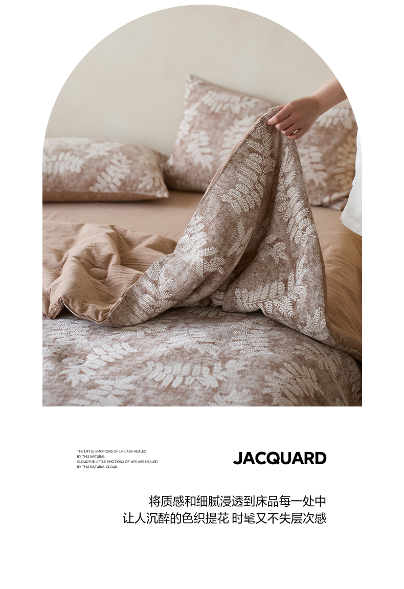 如一 2026新款60S全棉色织提花三层纱夏被四件套-诗韵系列 诗韵咖