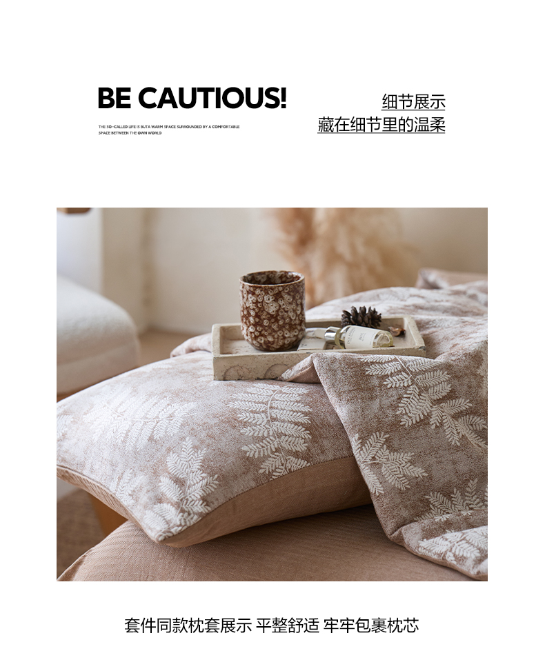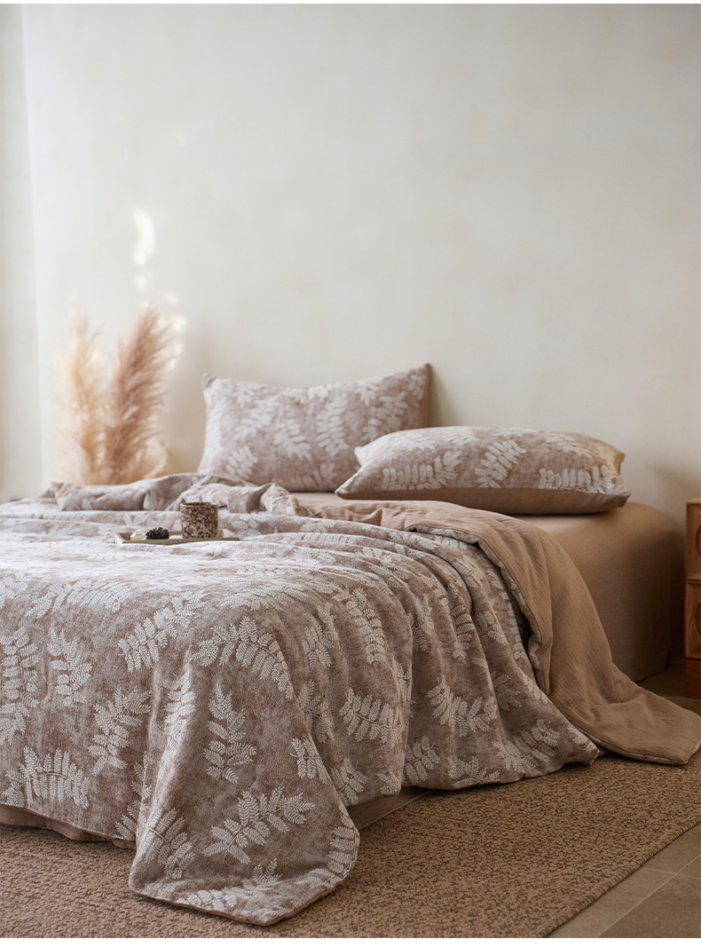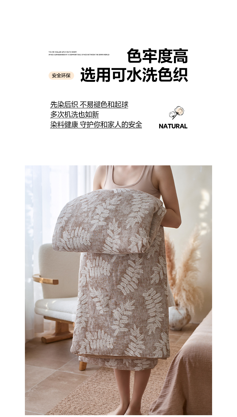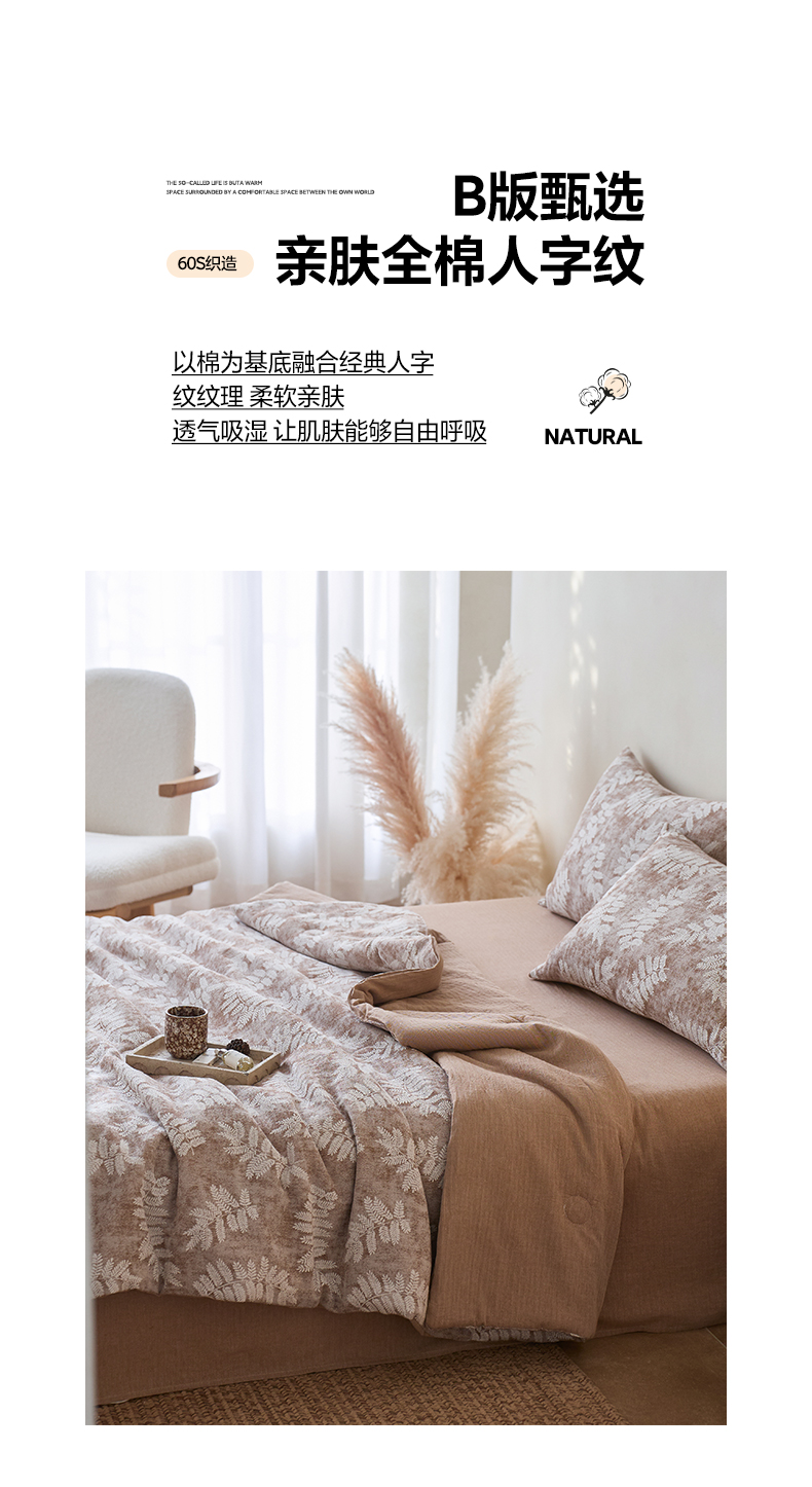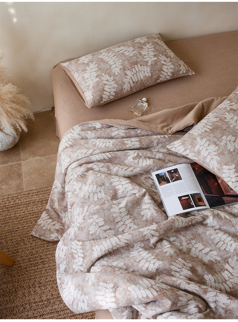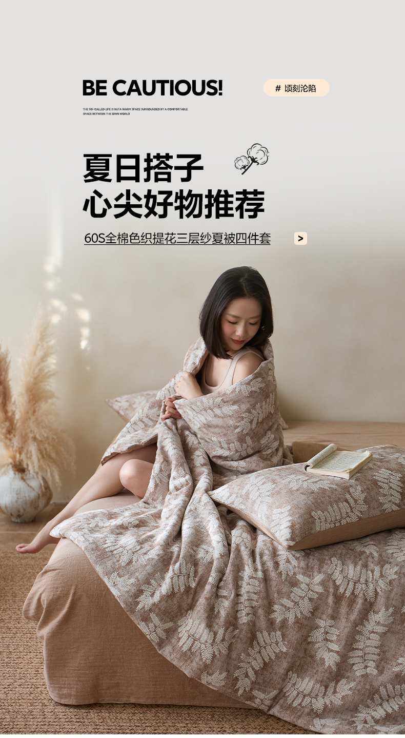 当前位置: 91家纺网 > 商品网购 > 被子 > 夏被 > 如一 2026新款60S全棉色织提花三层纱夏被四件套-诗韵系列 诗韵咖