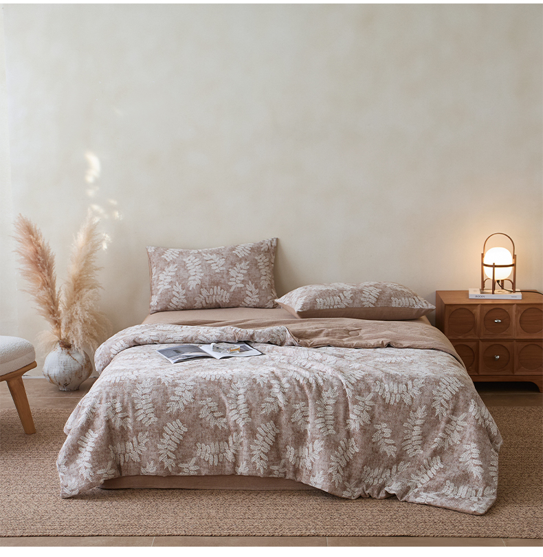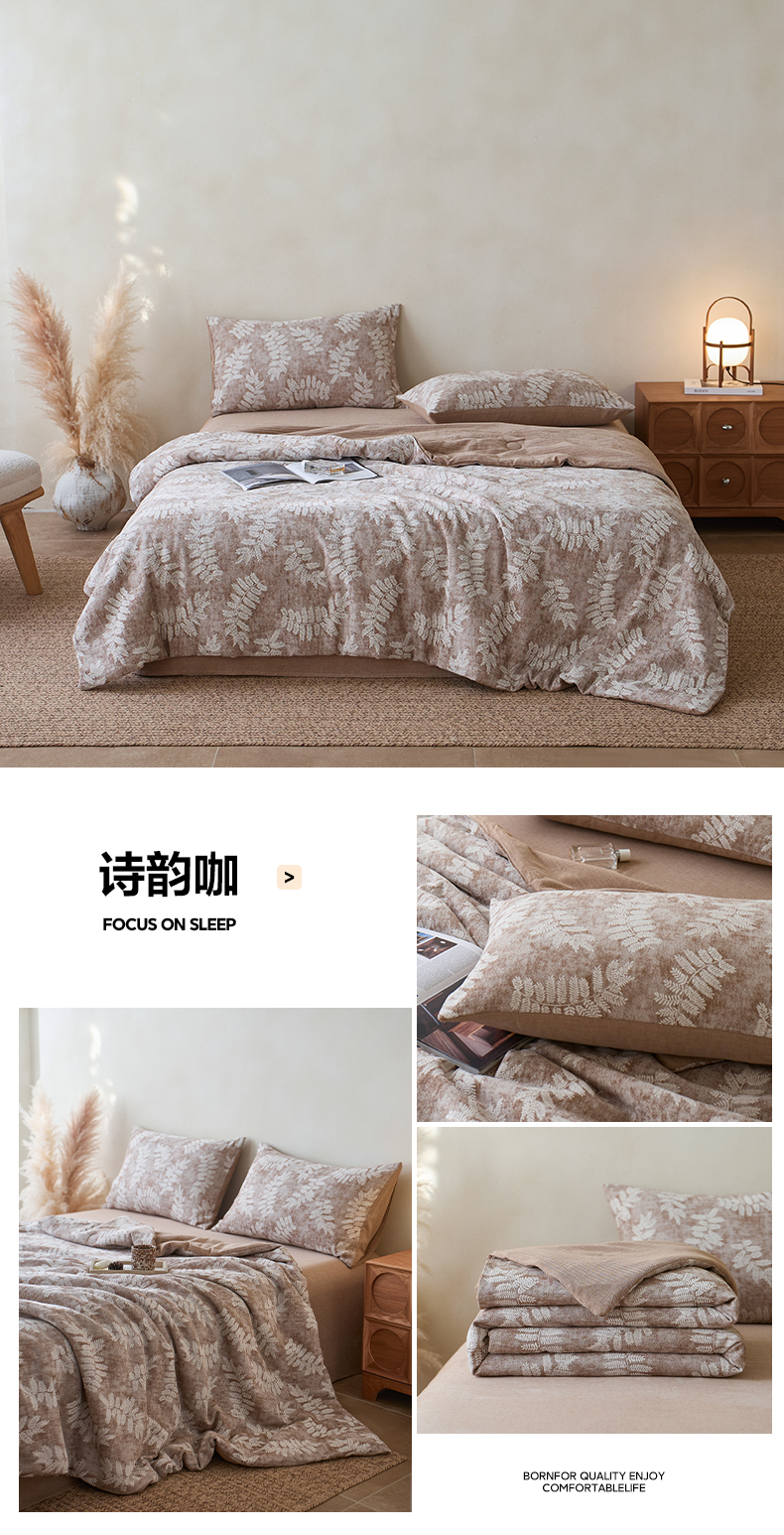• 91家纺网 家纺一手货源 找家纺 如一 2026新款60S全棉色织提花三层纱夏被四件套-诗韵系列 诗韵咖