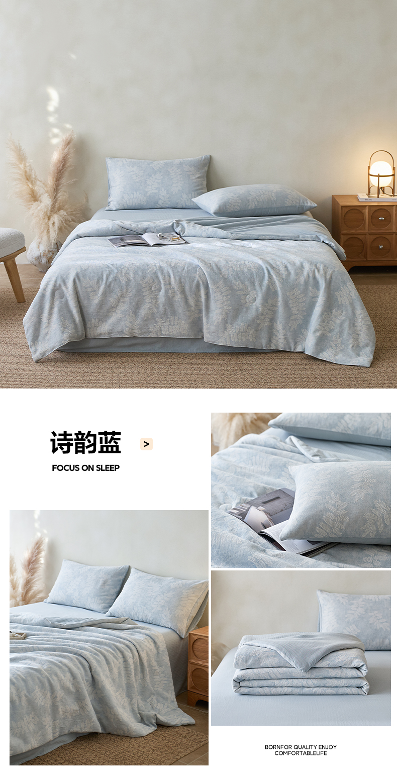 (总)如一 2026新款A类色织提花全棉双层纱水洗棉夏被夏凉被空调被四件套,浮光粉,浮光灰,浮光咖,兰序蓝,兰序绿,兰序紫,序章粉,序章蓝,叶笙咖,叶笙绿