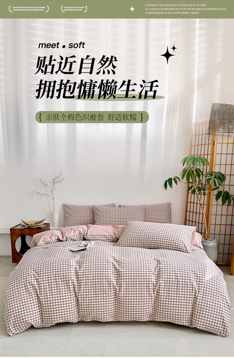 • 91家纺网 家纺一手货源 找家纺 家贝爱 2026新款全棉纯棉水洗色织被套单件被套单品单被套 小咖格
