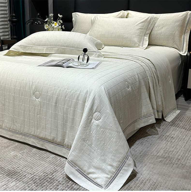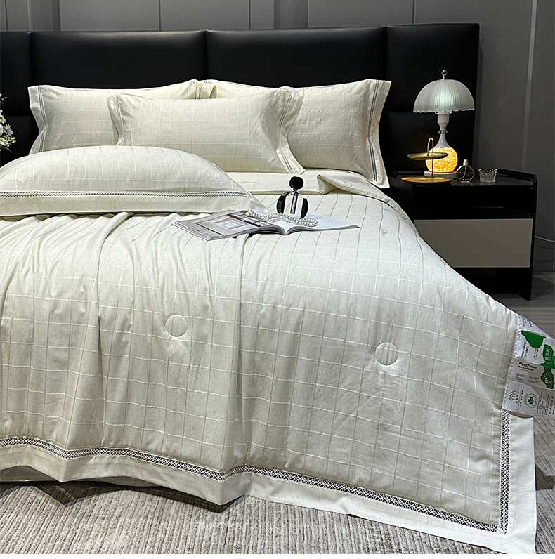 被子 > 夏被 > (总)欧夏 2026新款莱赛尔亚麻天丝麻方格提花镂空夏被空调被夏凉被夏季薄被子直播供货外贸(独立手提袋包装)