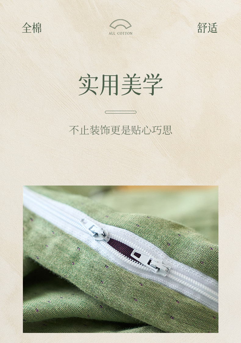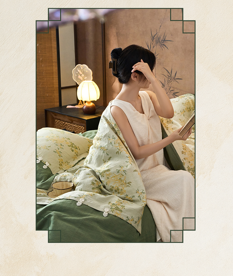 春皖家纺 2026新款全棉提花双层纱盘扣四件套-旗袍风系列 青栀