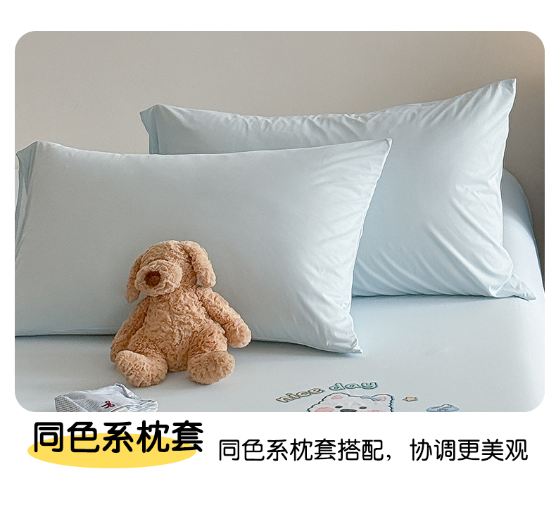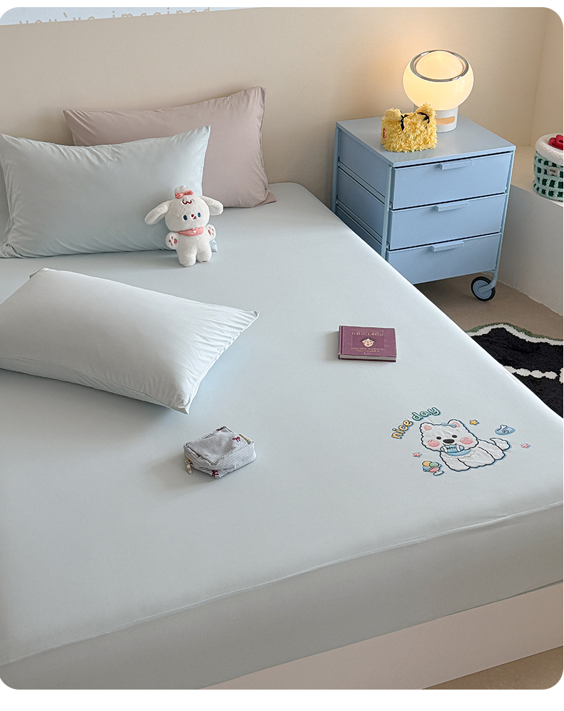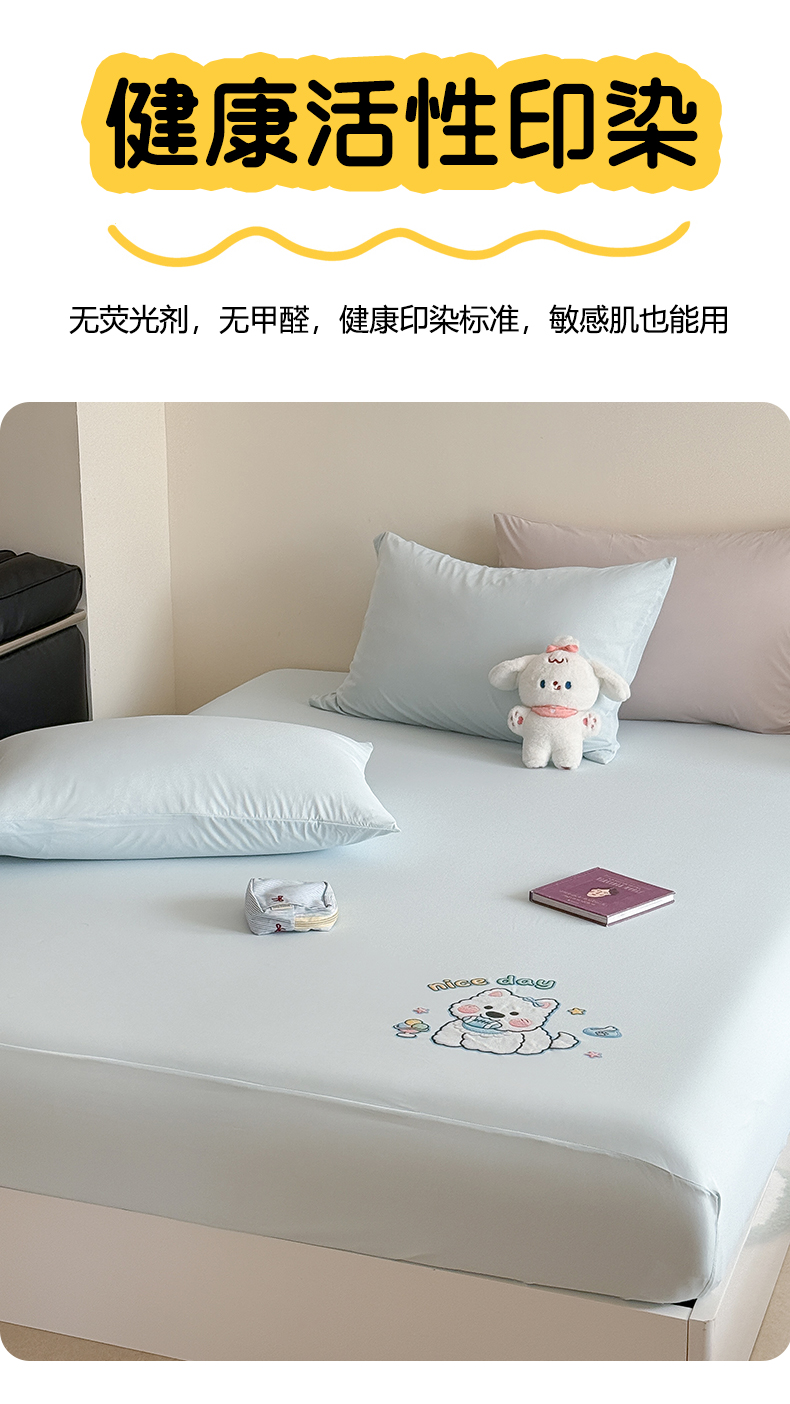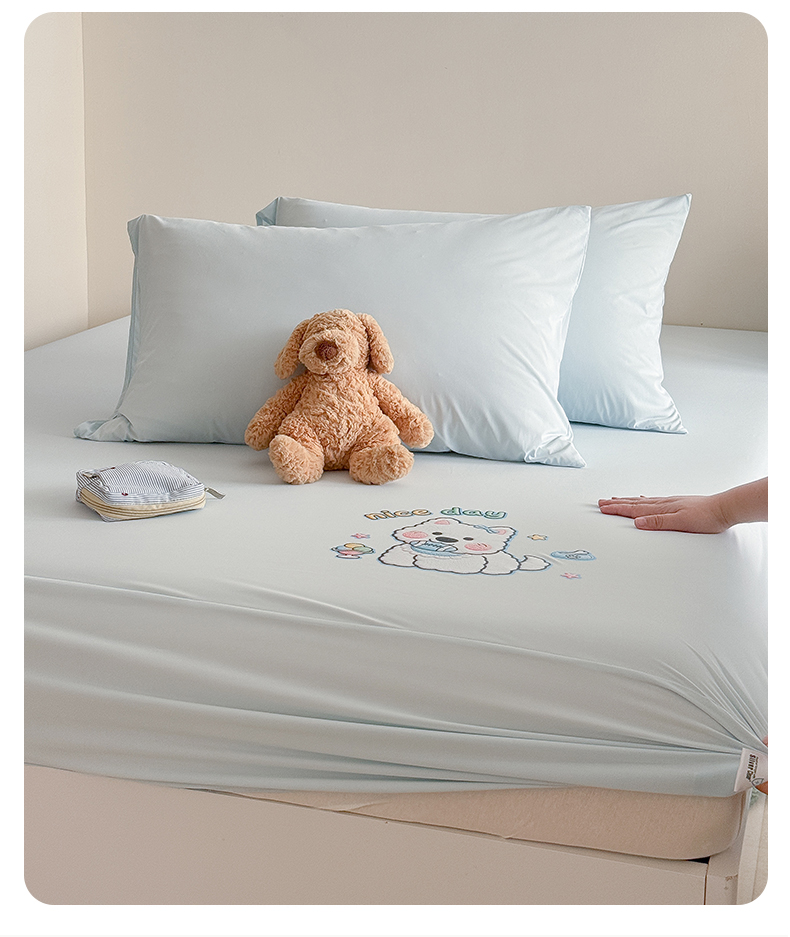 • 91家纺网 家纺一手货源 找家纺 TT.one 塔塔家居 2026新款A类卡通针织凉感刺绣烫印床笠 米多多-海盐蓝