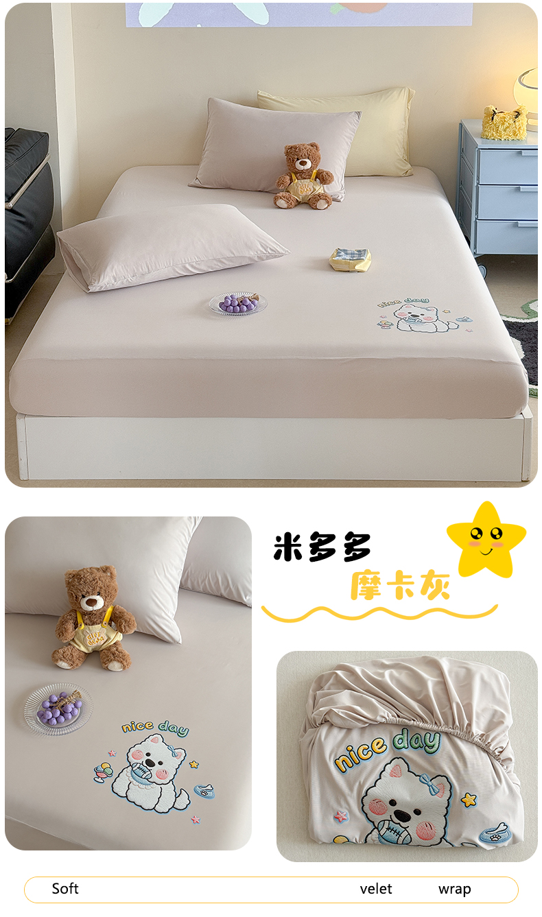 • 91家纺网 家纺一手货源 找家纺 (总)TT.one 塔塔家居 2026新款A类卡通针织凉感刺绣烫印床笠,米多多-奶昔黄,米多多-薄荷绿,米多多-海盐蓝,米多多-摩卡灰,米多多-少女粉,组合
