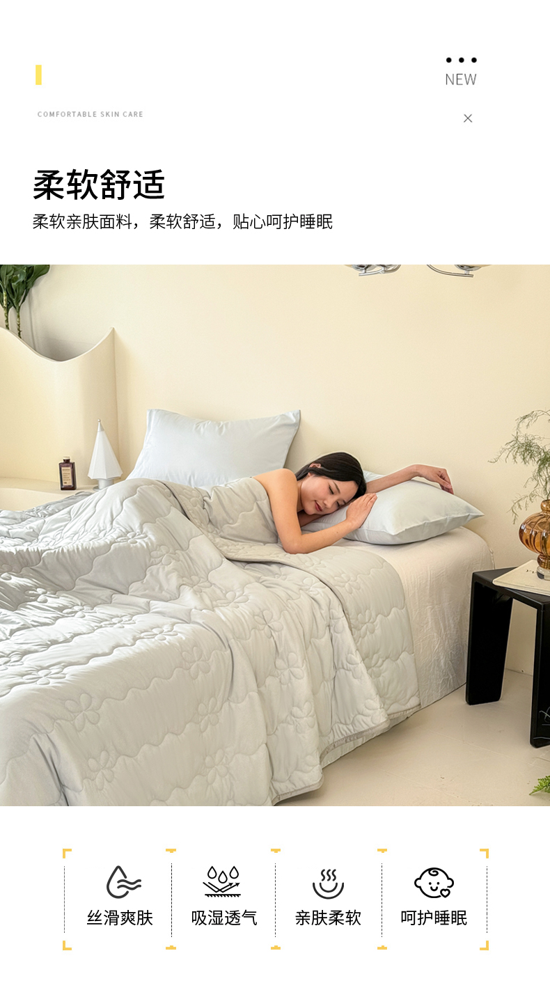 丹本家纺 2026新款凉感夏被空调被凉席空调席冰丝席纯色床裙乳胶席三件套四件套菱形格 夏被-灰色