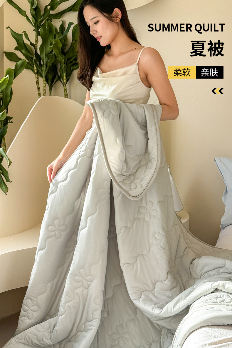商品名称:丹本家纺 2026新款凉感夏被空调被凉席空调席冰丝席纯色床裙乳胶席三件套四件套菱形格 夏被-灰色