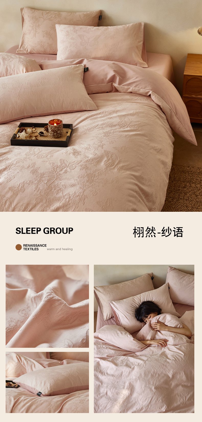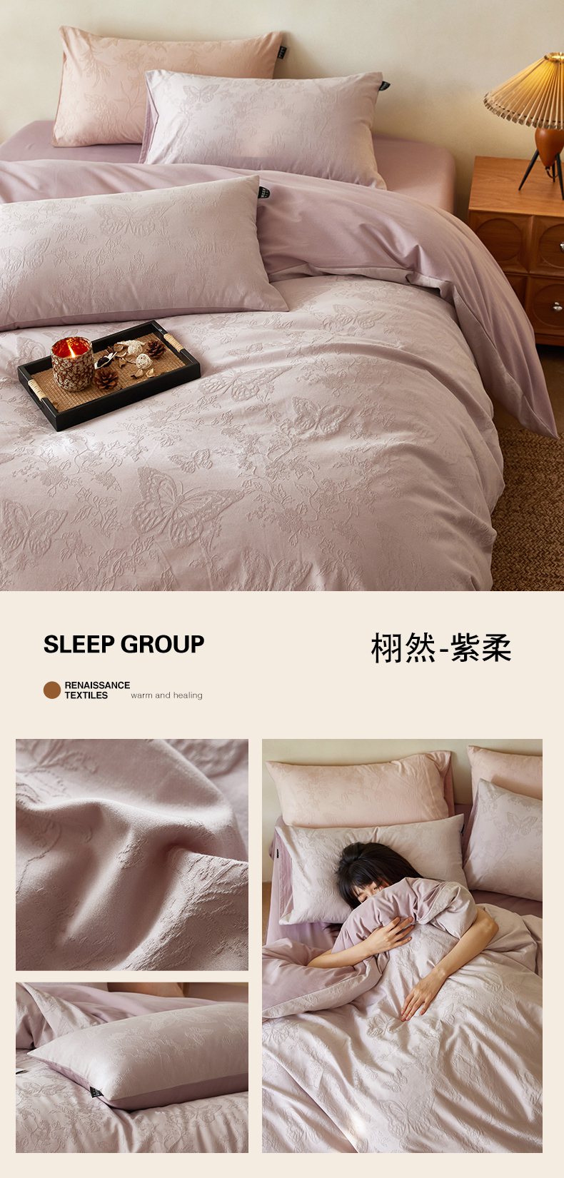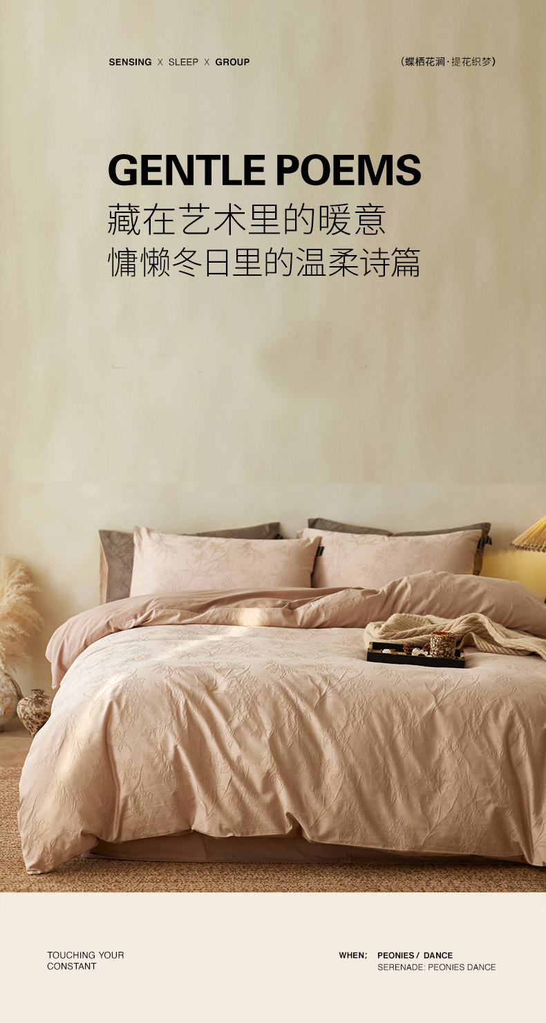 当前位置: 91家纺网 > 商品网购 > 床品套件 > 四件套 > 全棉普通四件套 > 沐珩家纺 2026新款全棉提花四件套-翩然梦蝶系列 逍然-拿铁