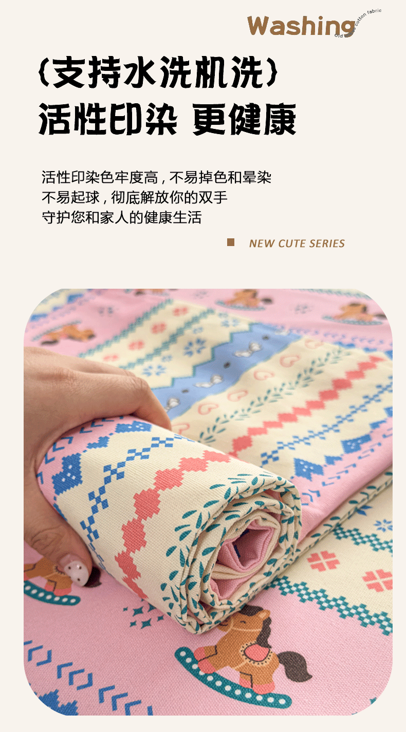 • 91家纺网 家纺一手货源 找家纺 (总)爱彼家纺 2026夏季热门新款费尔岛小马风格原棉老粗布床单席子凉席三件套-费尔岛风格,摇摇木马粉,格子小兔,摩洛哥小狗,奶蓝小马,甜梦kitt,西高地,小马牧歌,雪花kitt