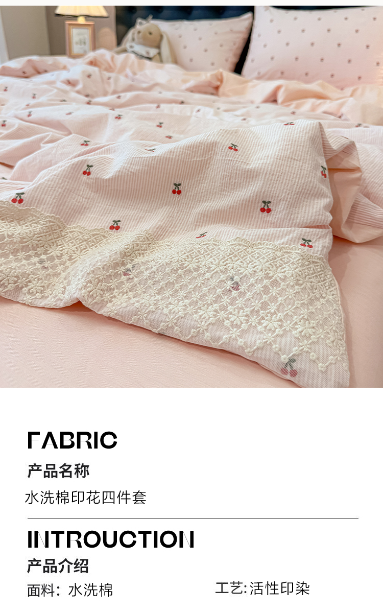 当前位置: 91家纺网 > 商品网购 > 床品套件 > 四件套 > 水洗棉四件套 > 盼季家纺 2026新款水洗棉印花法式高定小碎花蕾丝花边四件套 法式高定花边-清夏