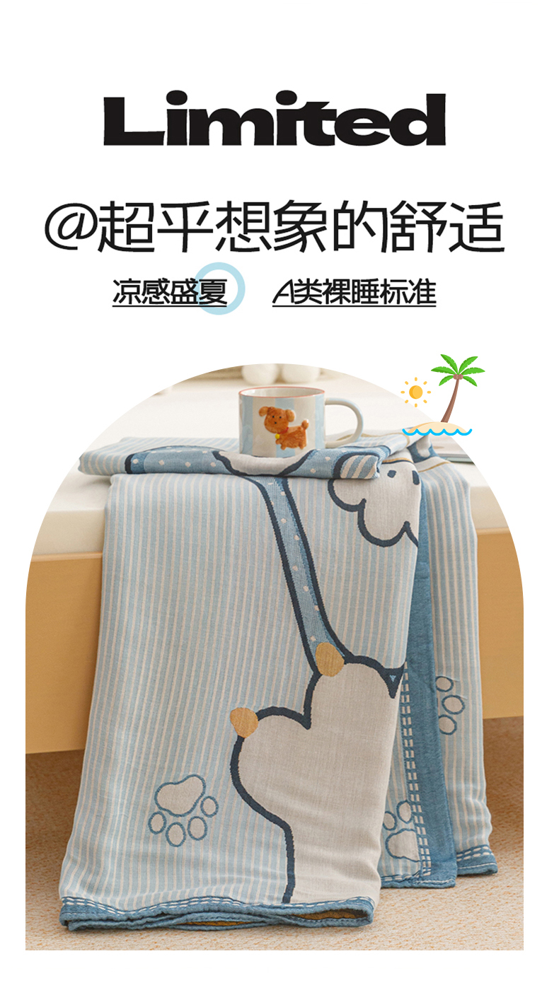 (总)悦然毛巾被 2026新款色织水洗棉盖毯安心棉床盖全棉纱布毛巾被夏被夏凉被空调被,组合图仅供展示不可下单,蓝格萌马,蓝格小狗,蓝格心语,蓝格星芒,蓝格熊语