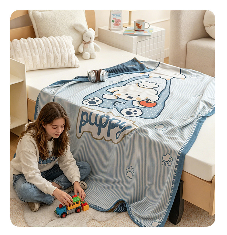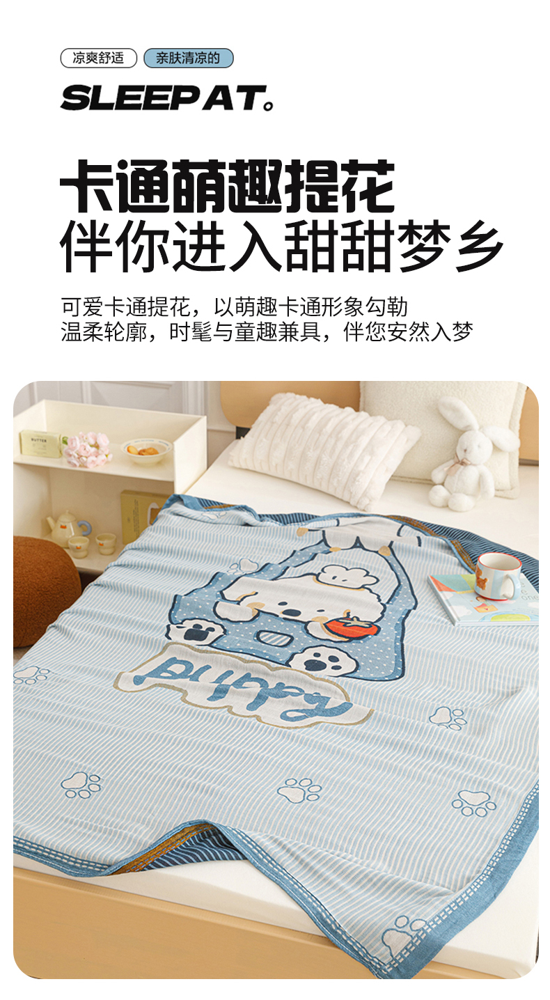 商品名称:悦然毛巾被 2026春夏新款三层竹纤维冷感毯休闲儿童毯成人毛巾被 汪汪小星