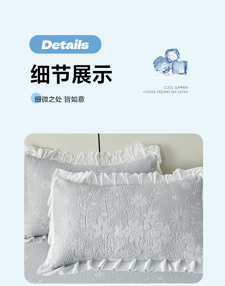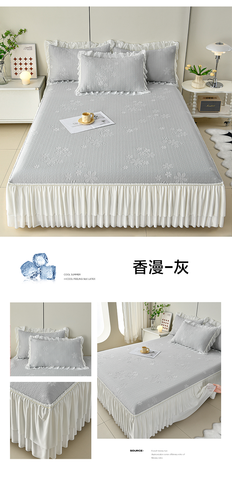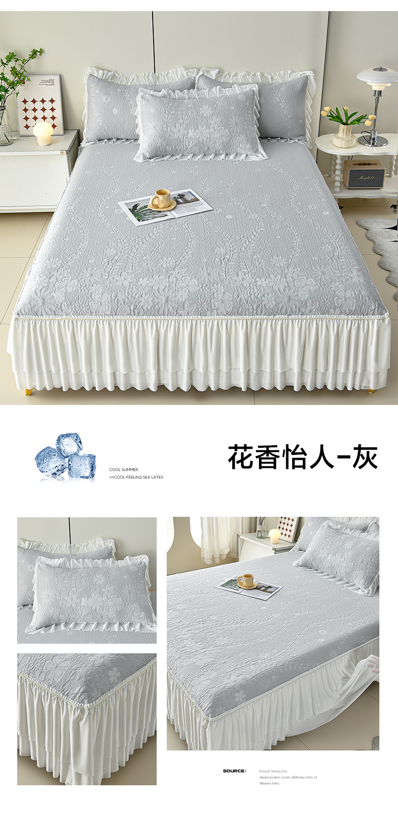 商品名称:畅畅家纺 2026春夏新款夏季3D立体冰豆豆凉席席子床裙三件套 花香怡人-灰