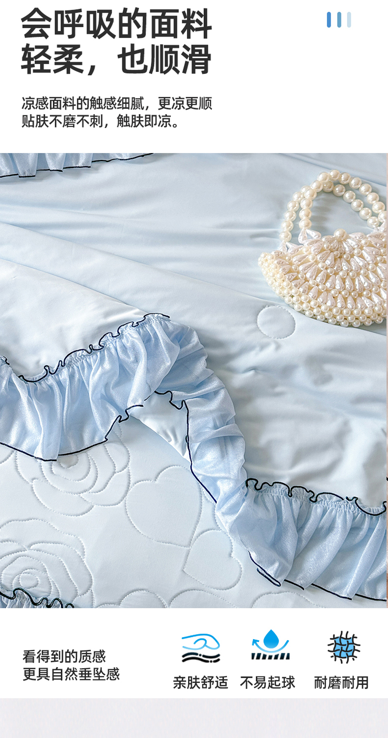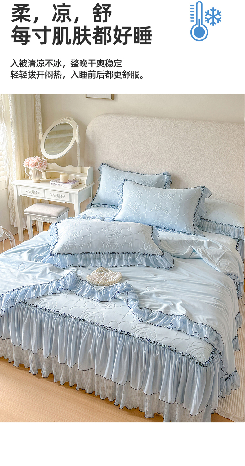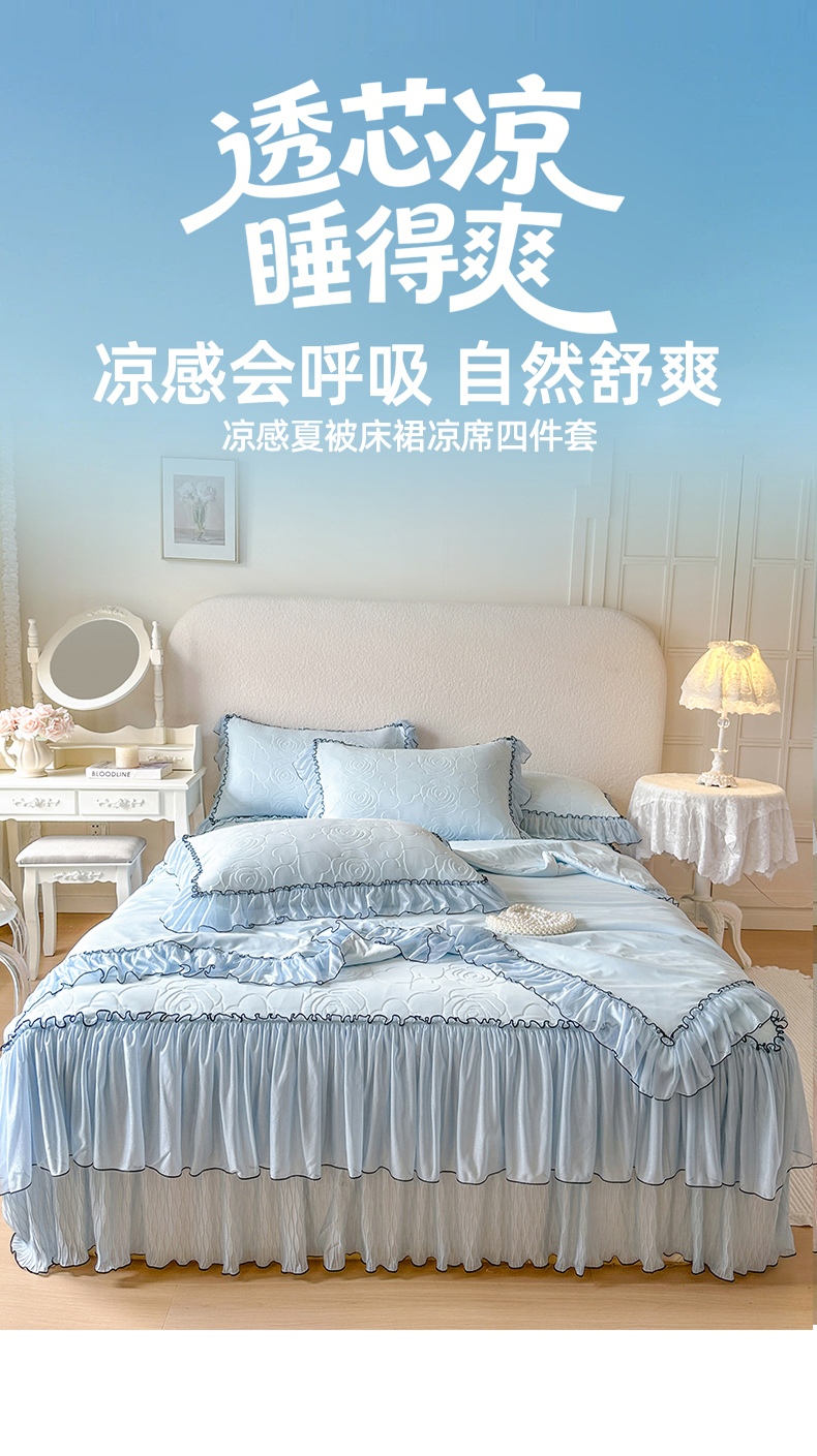 当前位置: 91家纺网 > 商品网购 > 床品套件 > 四件套 > 夏被四件套 > 网红馆(ck家纺) 2026春夏新款仲夏冰丝凉席夏被夏凉被空调被四件套 仲夏-蓝