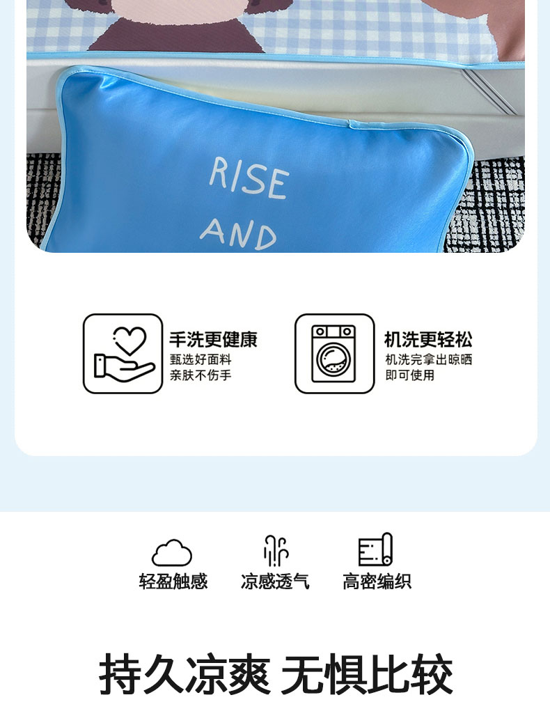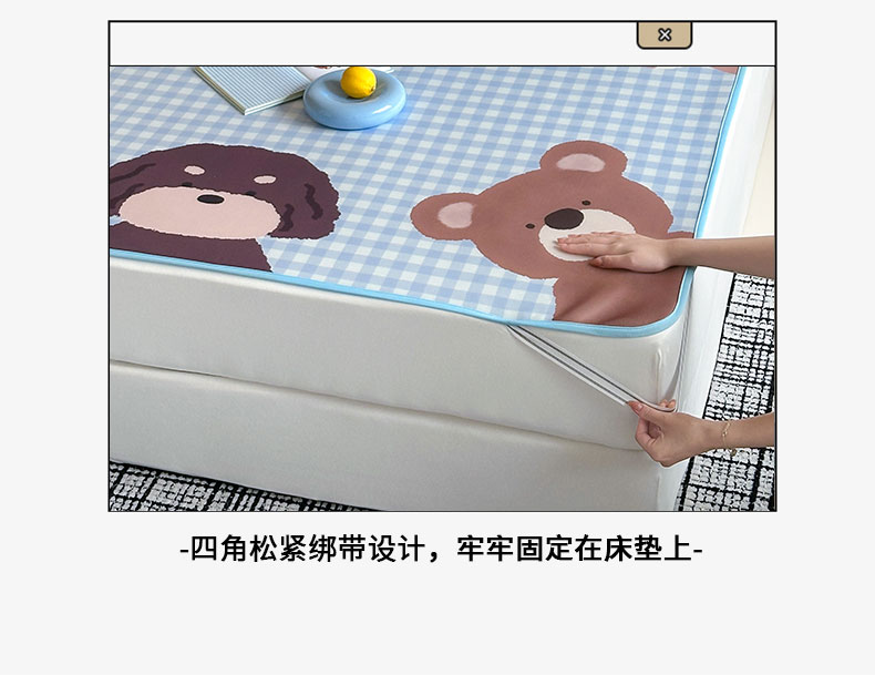 当前位置: 91家纺网 > 商品网购 > 床上用品 > 凉席 > 桃子家居 2026新款A类ins博主卡通数码印花高级品质撞色中分子1200D冰感丝凉感席冰丝三件套平铺床笠系列 冰感席混搭-夏日派对