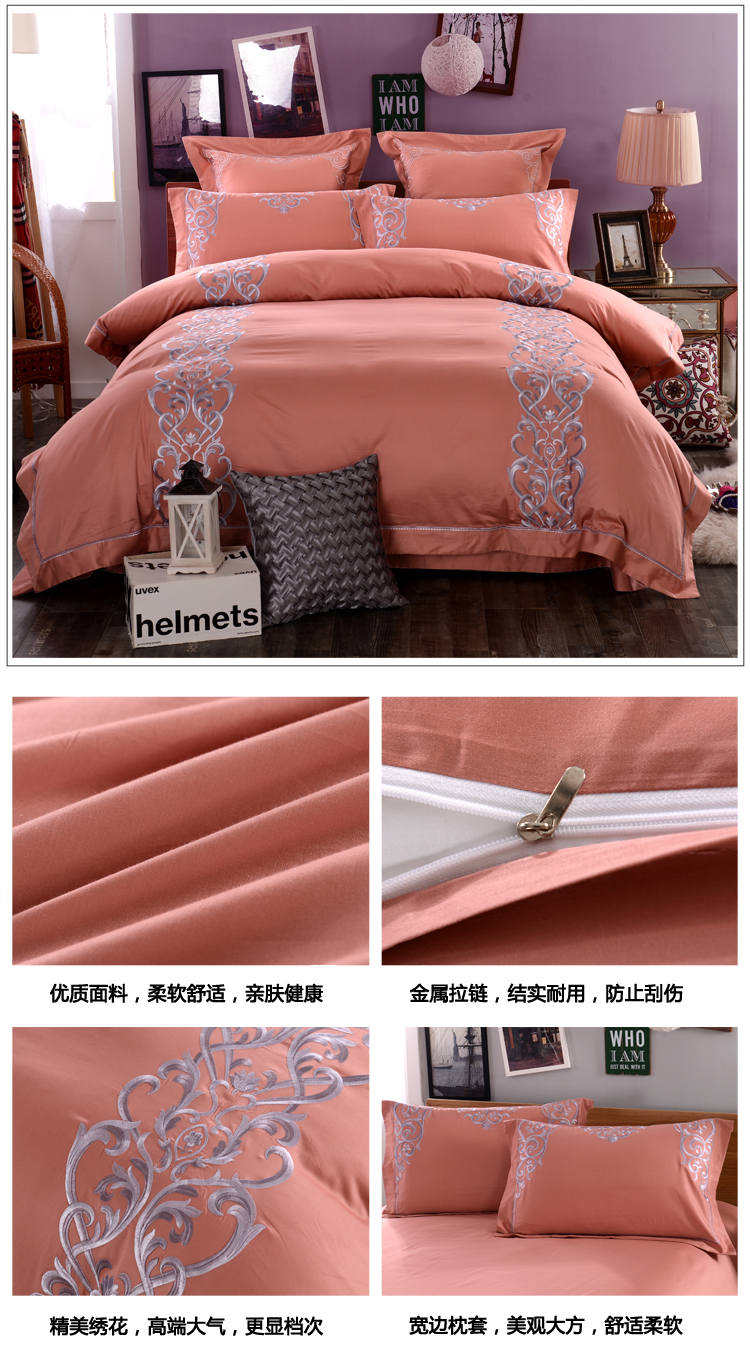 (总)艾莱家纺 2025新款A类精梳纯棉刺绣花四件套-赫柏,赫柏-橙夕,赫柏-花田米,赫柏-浅粉,赫柏-夜绿