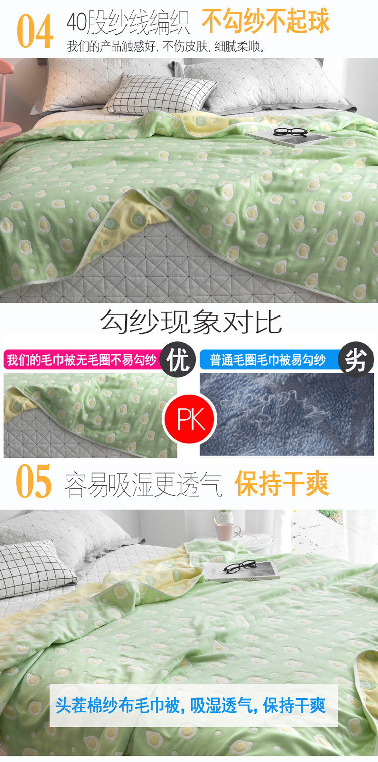 商品名称:朴尔家纺 夏季毛巾被纯棉毛毯被夏被毯子空调被 煎蛋-绿