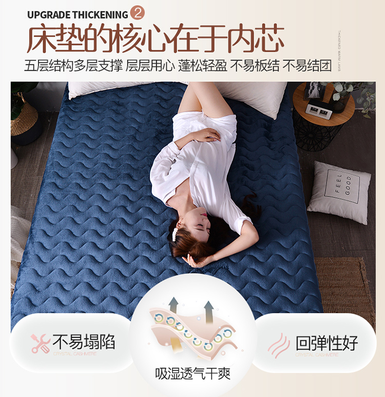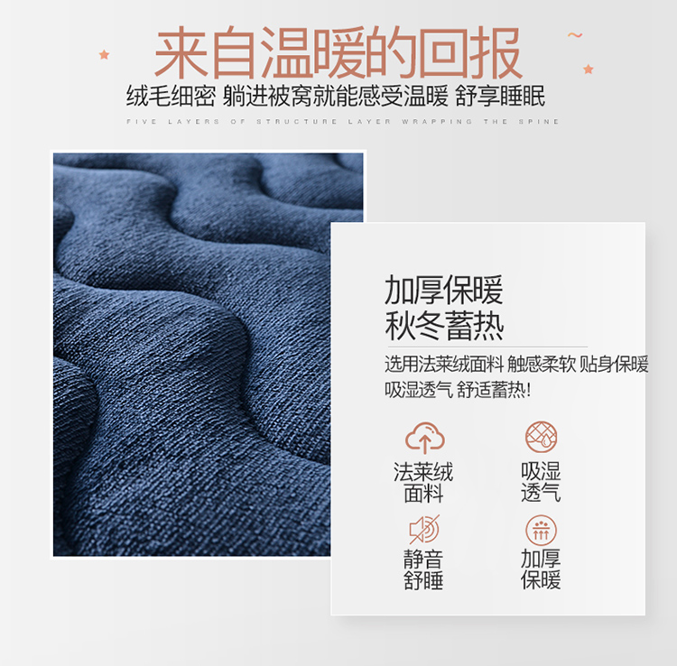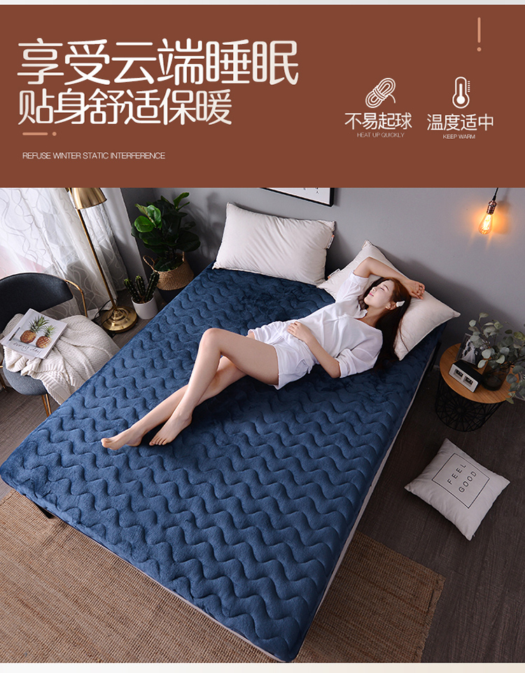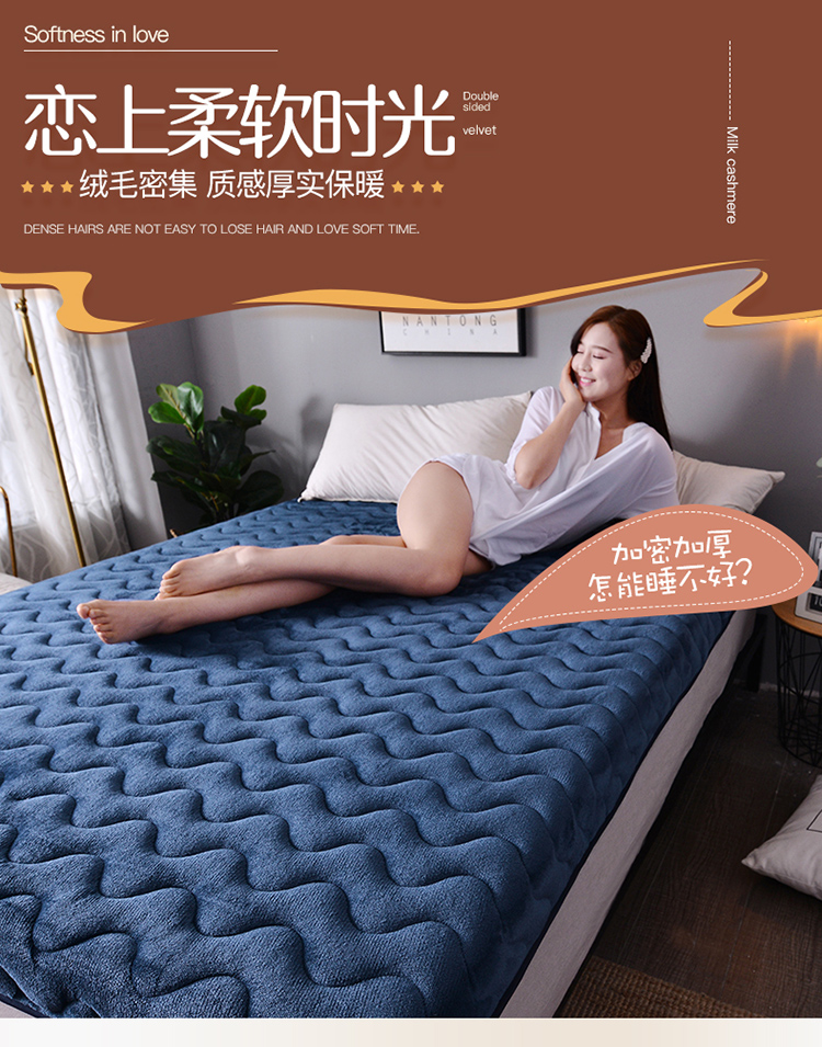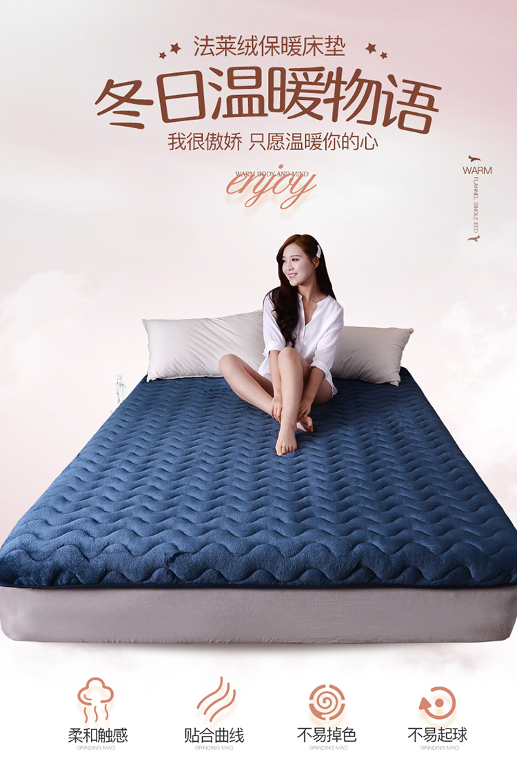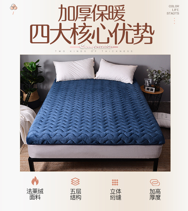商品名称:欣罗兰 2022新款单边大床法莱绒床垫 经典蓝