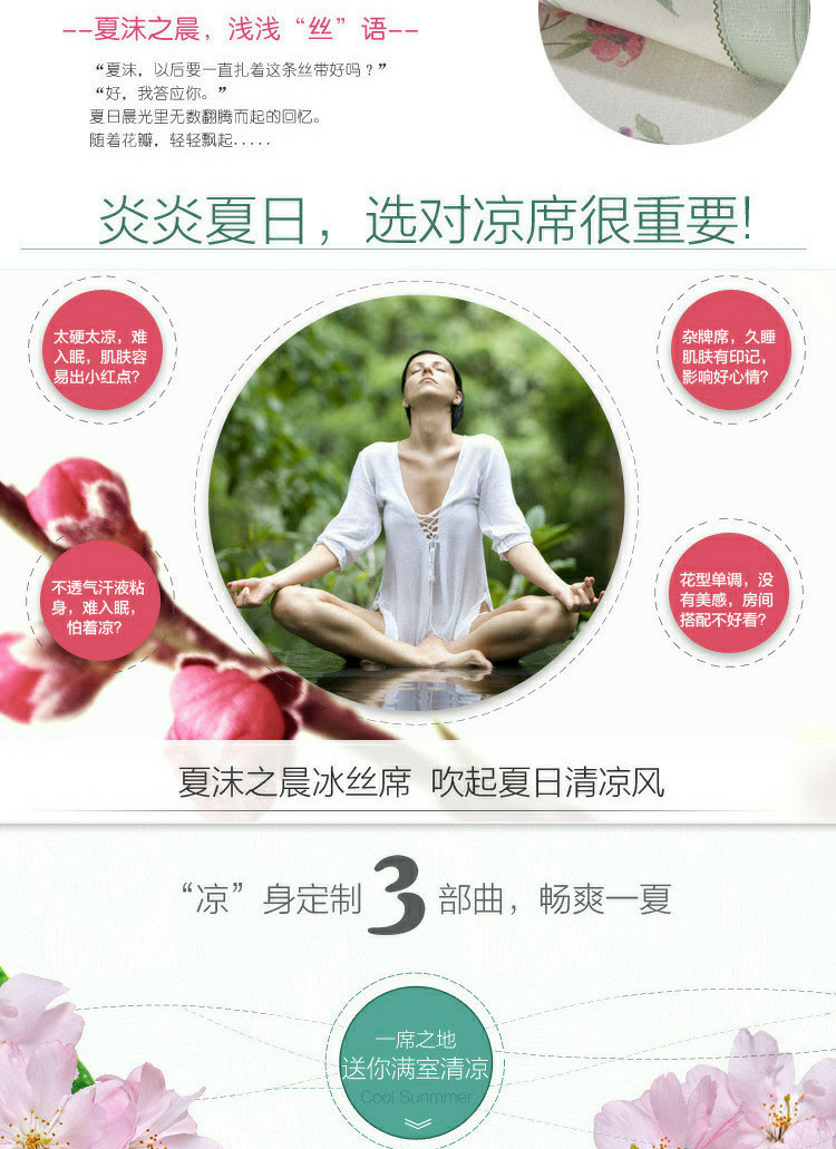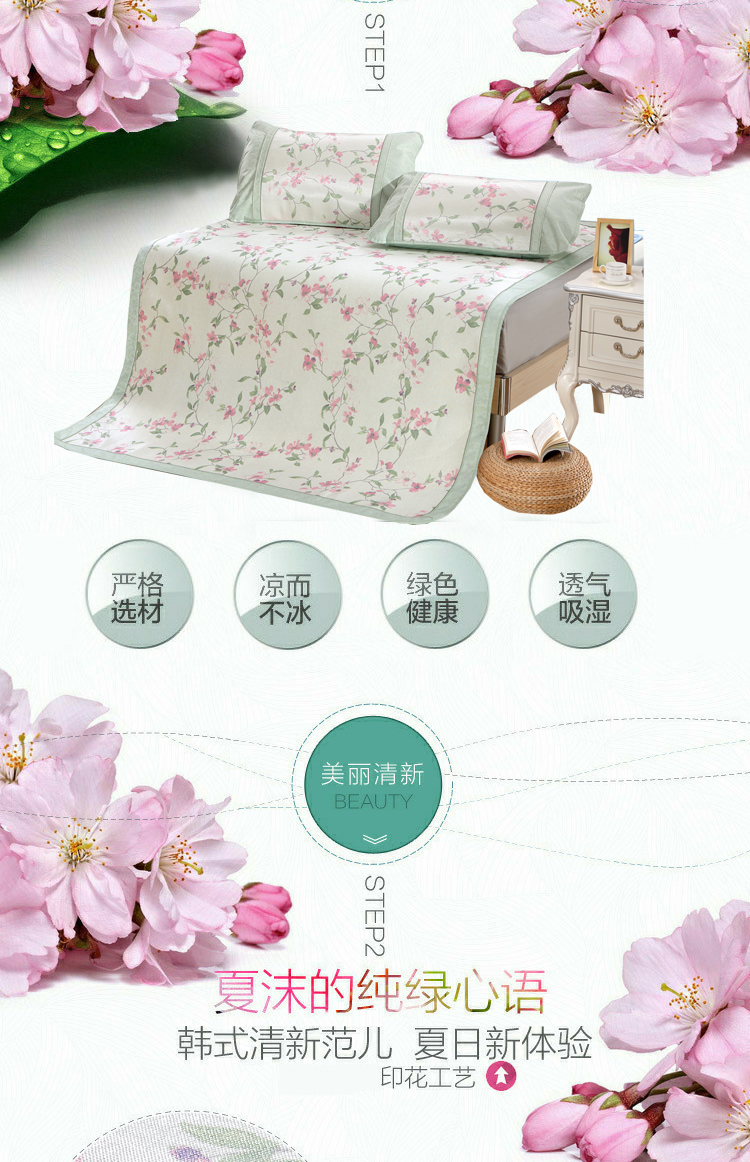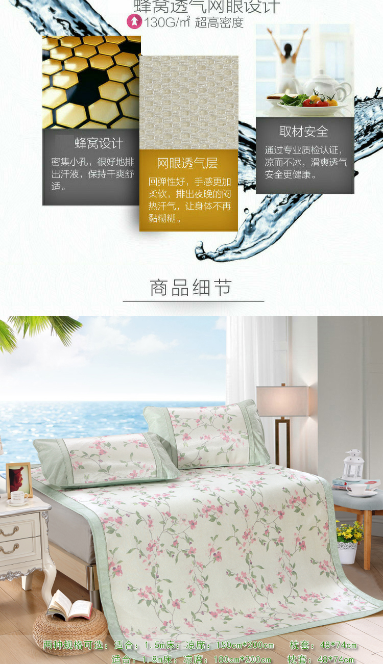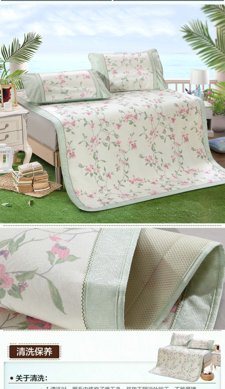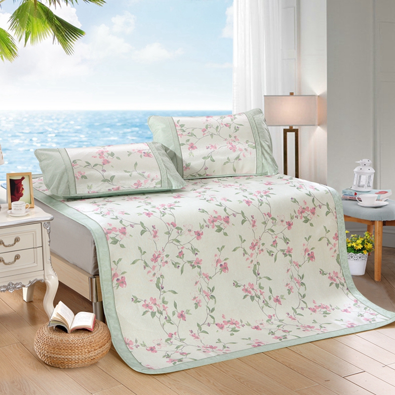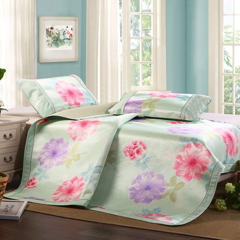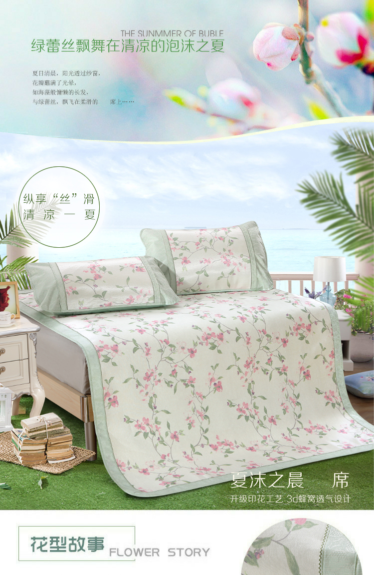 威克凯丽2023新款重磅七彩大提花纯竹纤维软凉席三件套 寻梦芳菲,寻梦芳菲